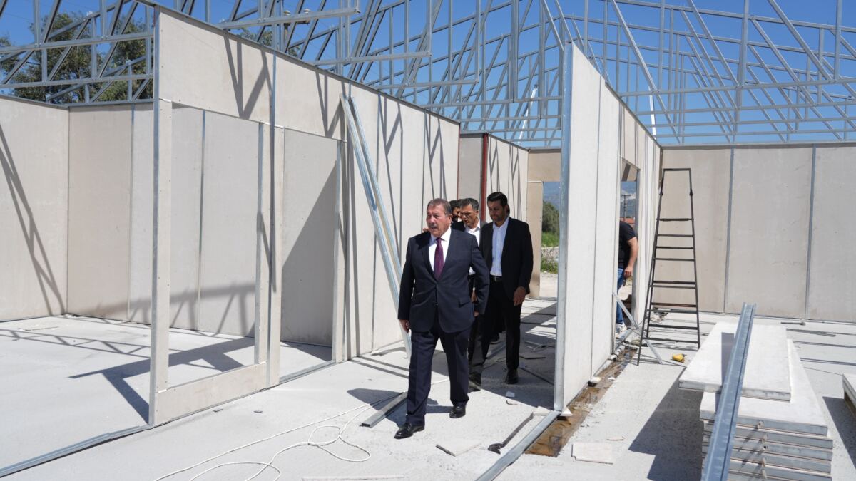Hacıabdi Mahallesi’nde bulunan Kuyular Mevkii’nde yapımı devam eden 637 m²lik idari bina kapasitesine sahip olacak alanı ziyaret eden Başkan Topuz, devam eden prefabrik montajı faaliyetlerini denetleyerek saha incelemesi gerçekleştirdi. Alanda ileriki süreçlerde yapılacak olan çalışmalar hakkında ekiplere talimatlar veren Milas Belediye Başkanı Fevzi Topuz, sık sık notlar aldırdı.