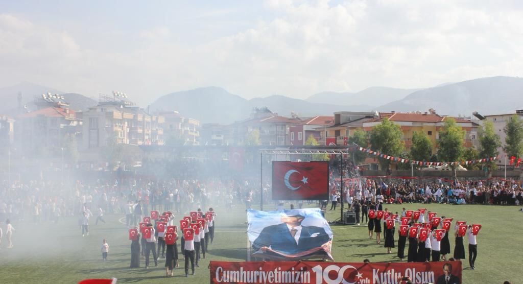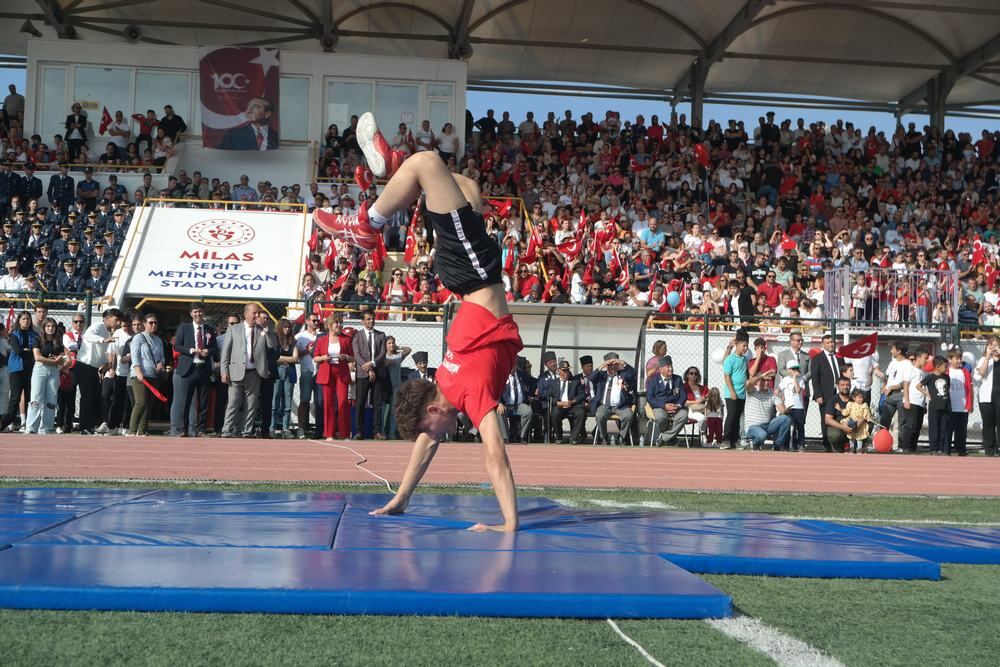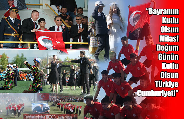 Cumhuriyetimizin 100. yılı ilçemizde de resmi törenle kutlandı. Milas Şehit Metin Özcan Stadyumu’nu dolduran binlerce kişi, cumhuriyetimizi coşkulu bir şekilde kutladı. Etkinlik kapsamında öğrenciler tarafından yapılan gösteriler ise ayakta alkışlandı. Milas Kaymakamı Mustafa Ünver Böke yaptığı konuşmada, “Bu kutlu Zaferin 100. Yıldönümü coşkusuna şahit olmak, çocuklarımıza, hatta torunlarımıza gururla anlatacağımız bir ayrıcalıktır. En büyük bayramın kutlu olsun Milas!. Doğum günün kutlu olsun Türkiye Cumhuriyeti!” dedi.