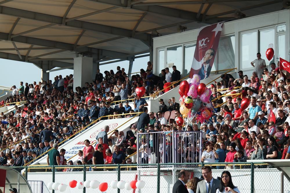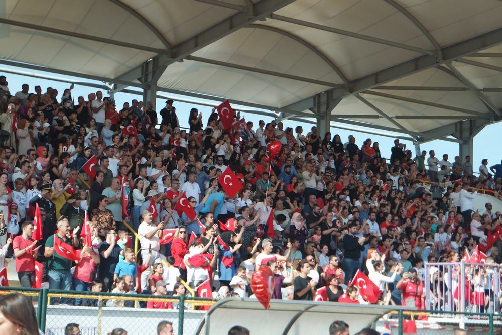 Havanın sıcak olmasına rağmen yoğun katılımın olduğu törende, vatandaşlar stadı doldururken, bazıları ise dışarıda kaldı.