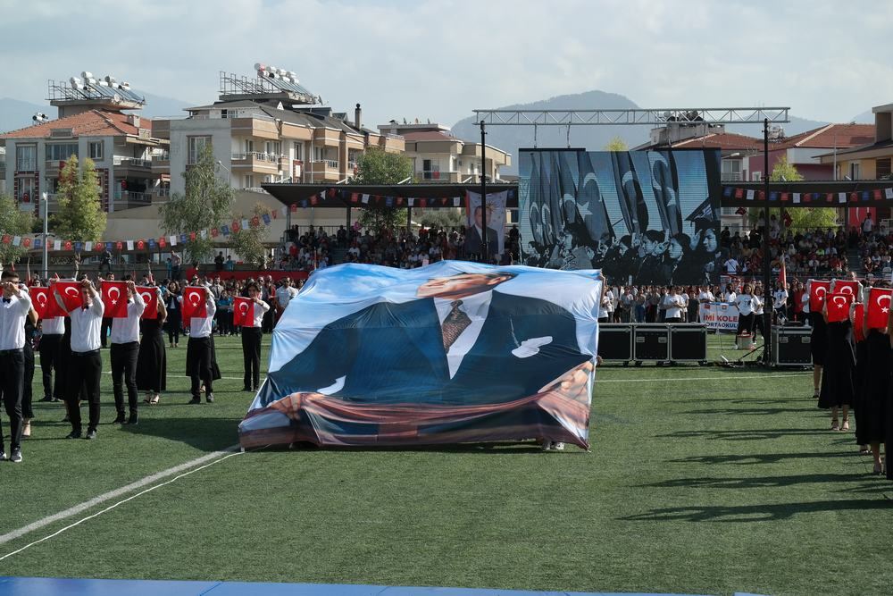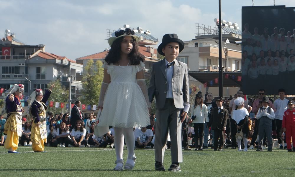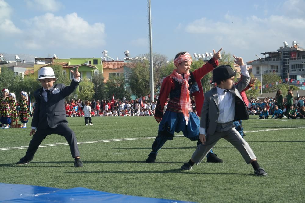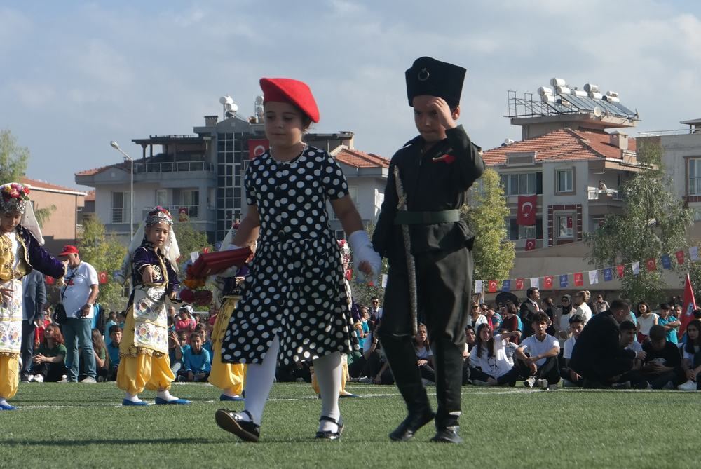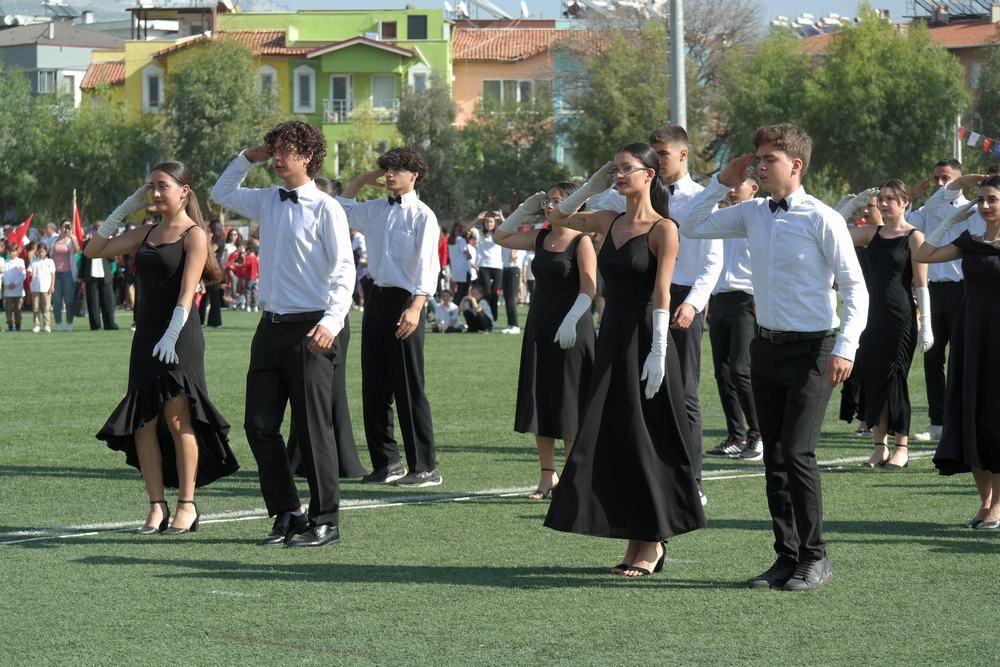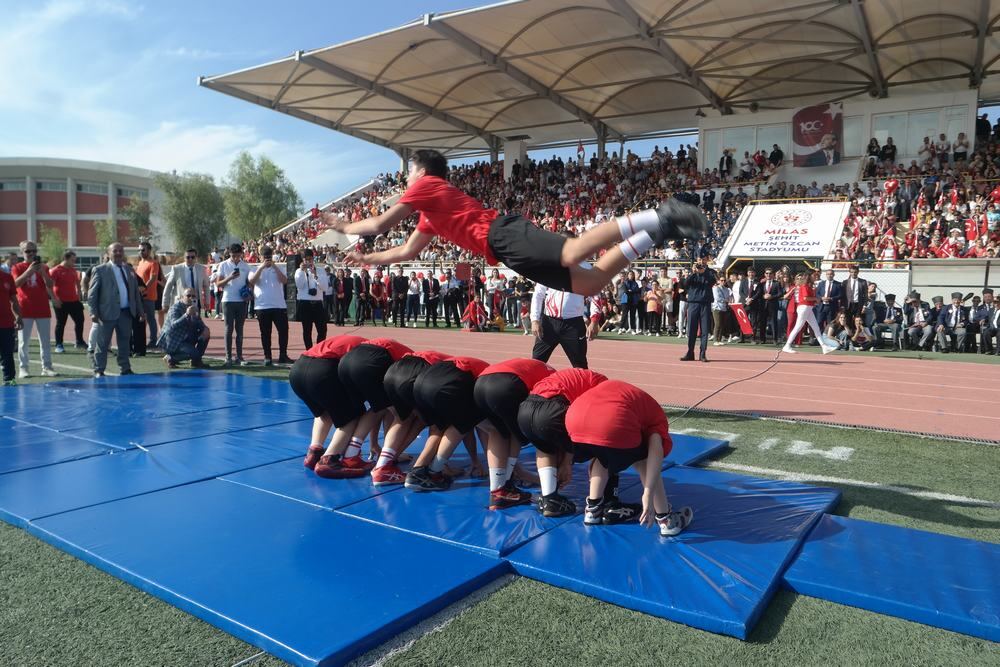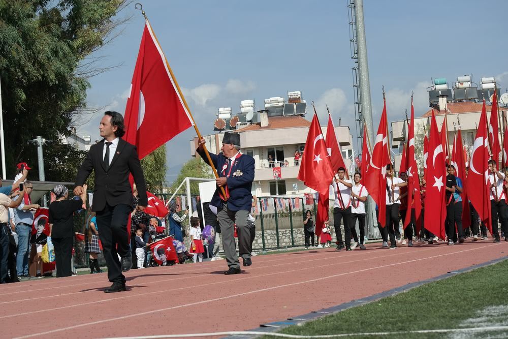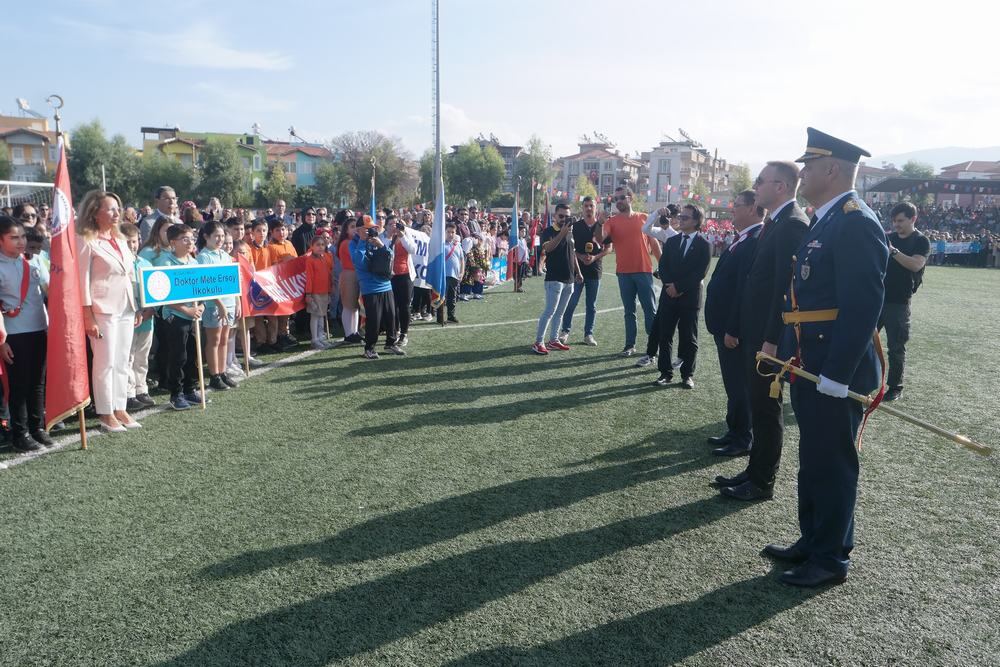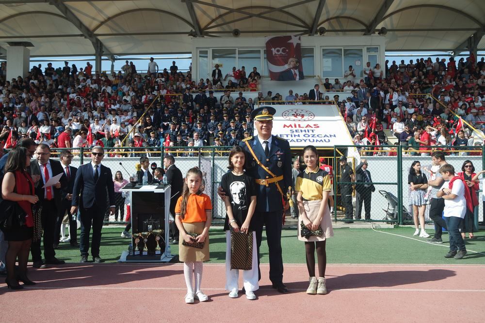 Milas Kaymakamı Mustafa Ünver Böke, Garnizon Komutanı Albay Muammer Mersincik, Belediye Başkanı Muhammet Tokat’ın öğrencilerin ve halkın bayramını kutlamasıyla başlayan tören saygı duruşunda bulunulması ve istiklal marşımızın seslendirilmesiyle devam etti.