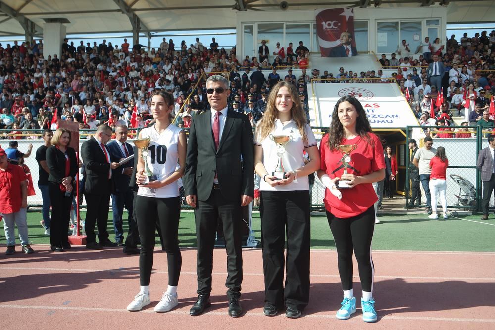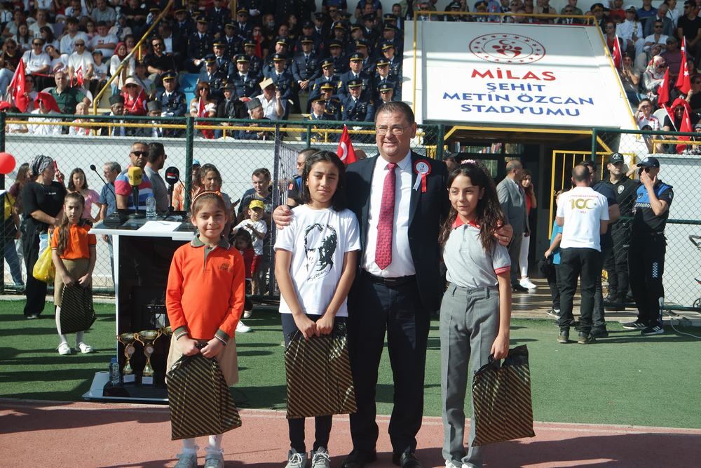 Gösterilerin ardından 29 Ekim Cumhuriyet Bayramı temalı resim, şiir ve kompozisyon yarışması ile okullar arası voleybol turnuvasında dereceye girenlere ödülleri Milas Kaymakamı Böke, Garnizon Komutanı Albay Mersincik, Belediye Başkanı Tokat ve Cumhuriyet Başsavcısı Salih Kılıç tarafından verildi.