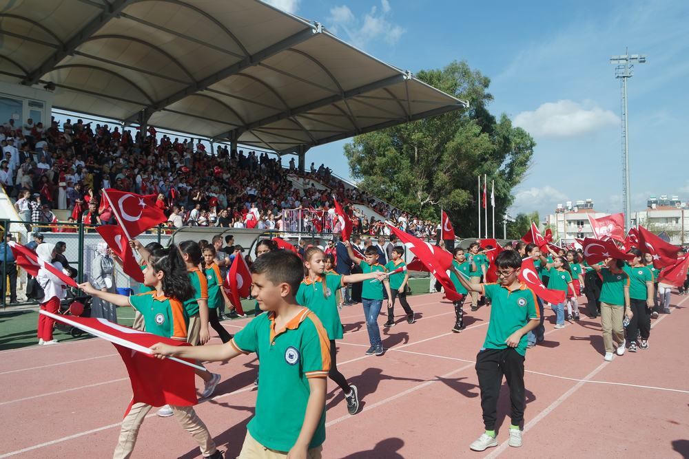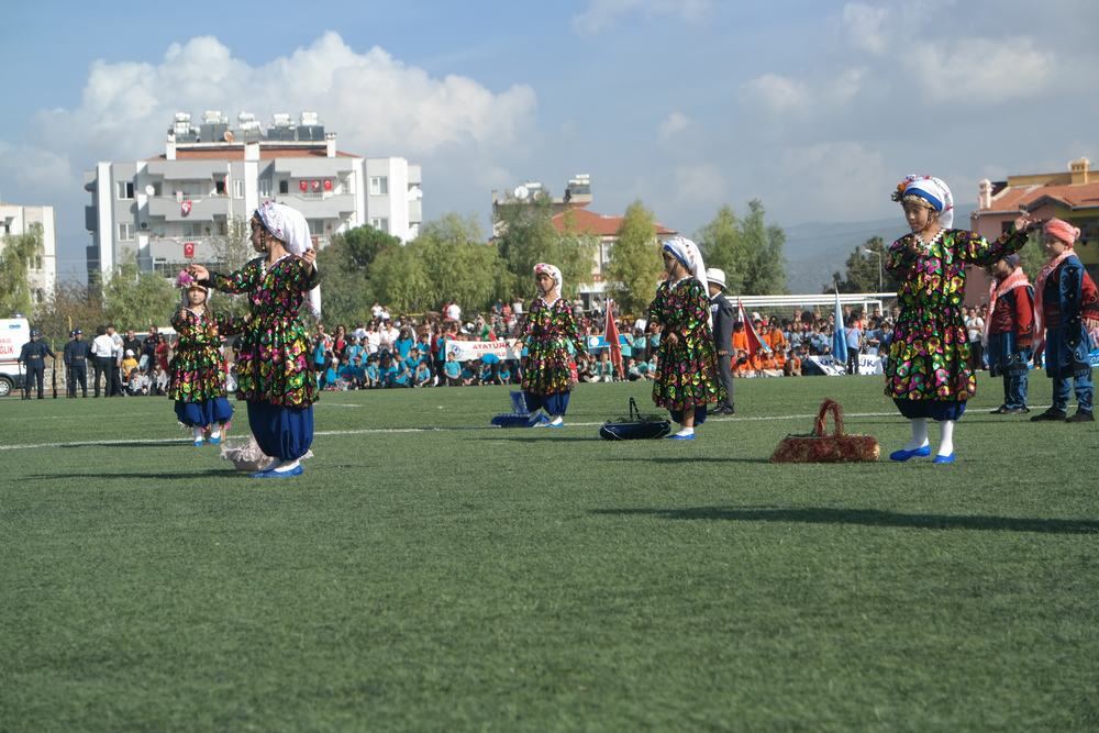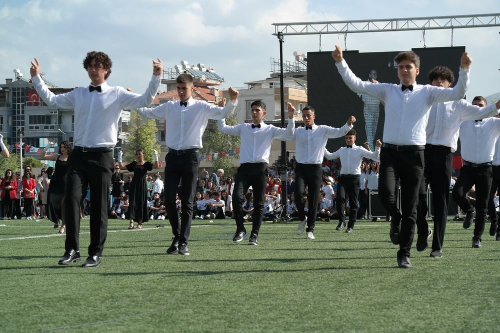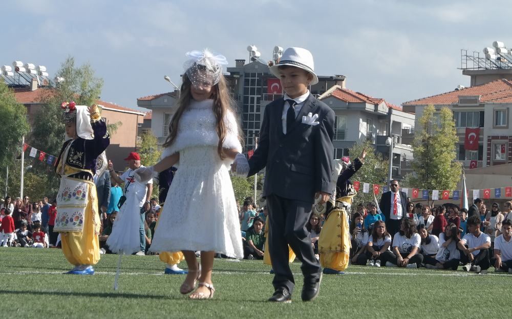 Kaymakam Böke’nin konuşmasının ardından tören Cumhuriyet’in 100. yılı nedeniyle öğrenciler tarafından seslendirilen şiirler ve öğretmenleri rehberliğinde hazırladıkları gösterilerle devam etti.