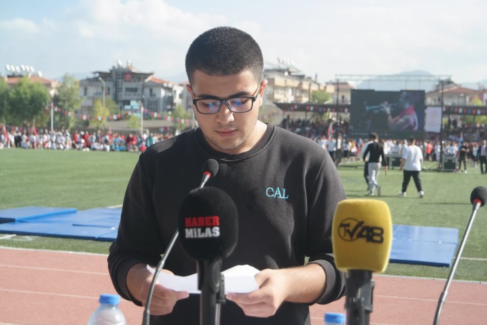 Milas’ın ve güzel ülkemin aydınlık geleceği gençlerimiz, unutmayın ki Ulu Önder, sizlere güvenmiş ve bütün ümidinin gençlikte olduğunu ifade etmiştir. Bu durum ise sizlere bahşedilmiş büyük bir onur olmasının yanında aynı zamanda büyük sorumluluklar yüklemektedir. İçte ve dışta; dâhili ve harici yıkıcı-bölücü odaklar, dün olduğu gibi bugün de mevcuttur. Sizden beklenen, Ulu Önder’in işaret ettiği yoldan ayrılmadan, hiç durmadan yürümektir. Asya ve Avrupa kıtalarını bağlayan bu müstesna coğrafyada bugün olduğu gibi yarın da uğraşmak zorunda olacağımız güçler ve güçlükler olacaktır. Her şeyden önce, kendinize güveniniz. Siz, bundan 100 yıl önce emperyalizmin en önde gelen güçlerini alt etmiş; tüm dünyada mazlum uluslara ilham kaynağı olmuş bir ulusun temsilcisisiniz. Bilimin rehberliğinde, Atamızın gösterdiği hedefe bu ülkeyi ulaştıracak, asla yorulmayacaksınız. Türkiye Cumhuriyeti devletini, layık olduğu yere, milletler liginin en üstüne taşıyacaksınız.