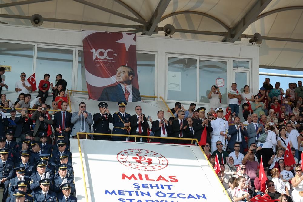 Değerli Milaslılar, kıymetli konuklar, Ulus olarak büyük bir zafere ulaştığımız Kurtuluş Savaşımızı yeni, güçlü bir devletle ve Cumhuriyet yönetimi ile taçlandırışımızın üzerinden tam bir asır geçti. Bağımsız ve müstakil, özgürce yaşama arzusu ile elde edilen bu büyük zaferi sürekli hale getirmek için Cumhuriyete giden yolu çok iyi bilmek, anlamak ve her zaman hatıralarımızda canlı tutmak zorundayız. Çünkü bu süreç, yüce devletimizin bekası ve ulusumuzun huzur ve refahı açısından en önemli kılavuzdur. Mustafa Kemal Atatürk’ün rehberliğinde büyük Türk milletinin kanı, canı ve büyük fedakârlıklarıyla kurulan Türkiye Cumhuriyeti, geride bıraktığımız yüzyılda olduğu gibi Sayın Cumhurbaşkanımızın da ifade ettiği üzere, önümüzdeki yüzyılda, “Türkiye Yüzyında” da tüm kazanım ve değerleri ile sonsuza değin yaşatılması, hepimizin ortak sorumluluğudur. Türkiye Cumhuriyeti devletinin milletlerarası bağı güçlü, dışa dönük, ekonomik gelişmesini ve kalkınmasını tam anlamıyla gerçekleştirmiş büyük bir ülke olarak Atasının çizdiği hedeflere koşması ve ulaşması kuşkusuz hepimizin en büyük dileğidir. Bu nihai hedeflere aklın ve bilimin yol göstericiliğinde Atatürk ilke ve inkılapları ışığında şüphesiz ulaşacağız.