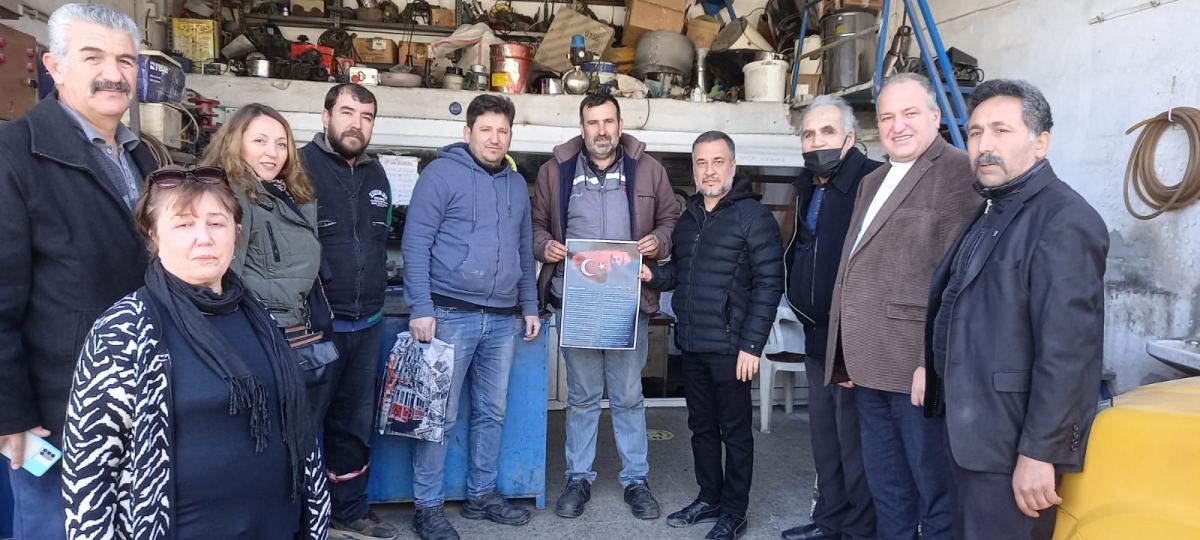 İki ayrı grup halinde gerçekleştirilen etkinlikte, bir grup ilçe merkezindeki 101 esnafa, diğer grup ise Milas Sanayi Sitesi’ndeki 101 esnafa hem afiş dağıttı, hem de esnafla dertleşti.