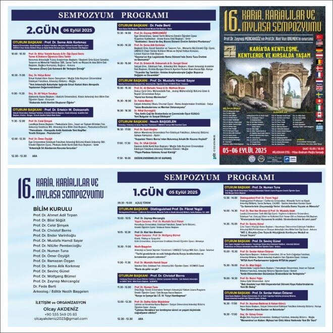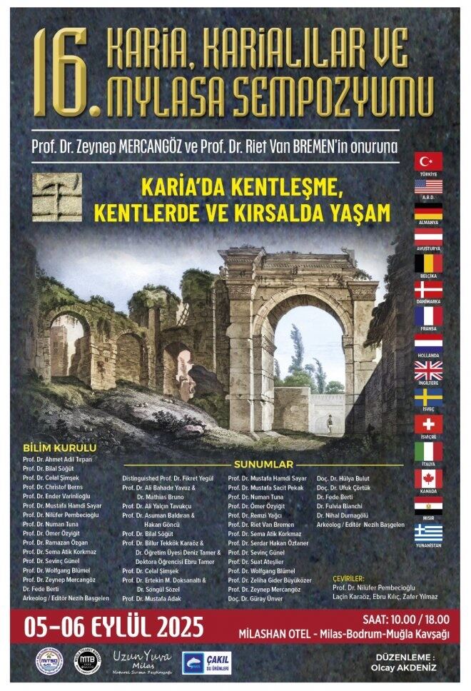16. Karia, Karialılar ve Mylasa Sempozyumunu her yıl olduğu gibi bu yıl da Milas’ta, Milas – Bodrum – Muğla kavşağındaki Milashan Otelde yapacağız. 5 / 6 Eylül 2025 Cuma, Cumartesi günleri yapılacak sempozyumun sunumları saat 10.00 – 18.00 arasında olacak.”
