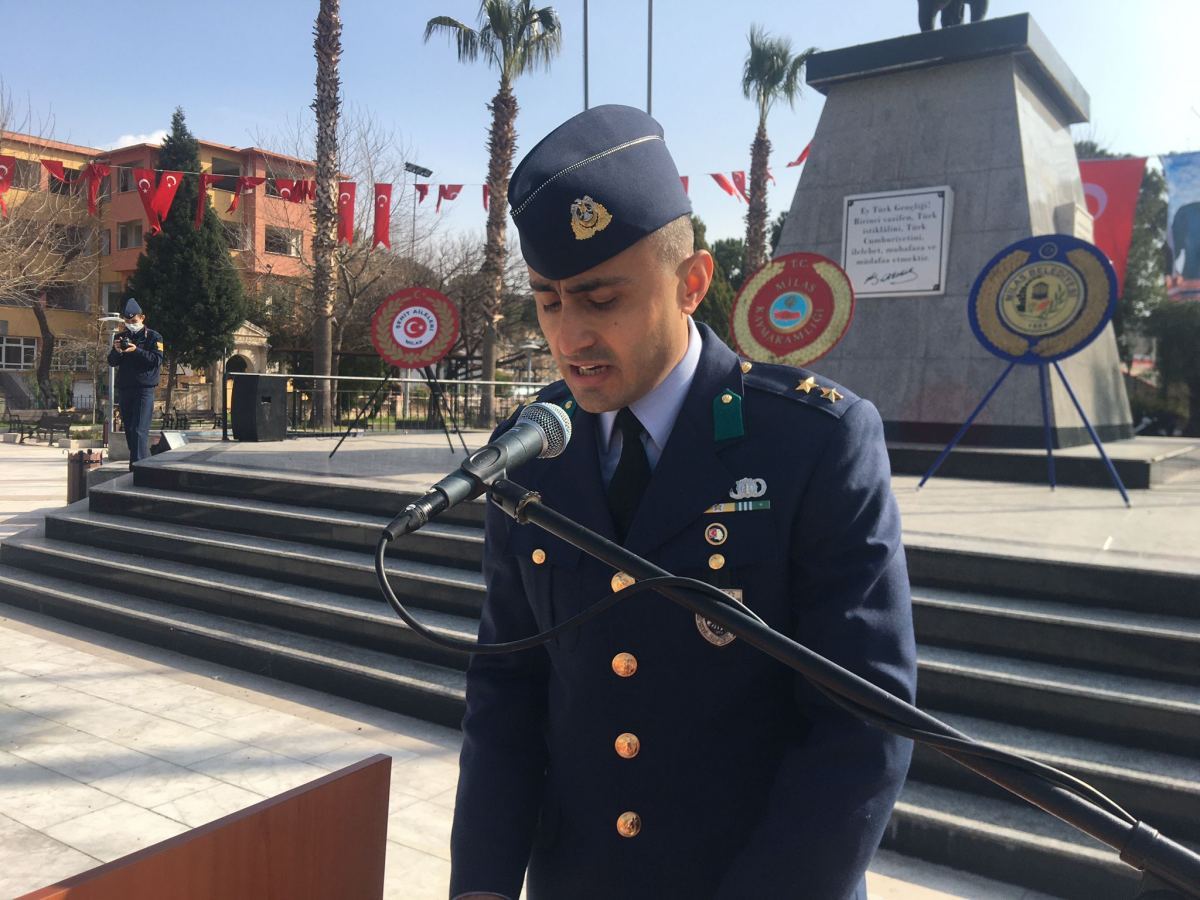 Hava Piyade Üsteğmen Fatih Aydın’ın günün anlam ve önemini belirten konuşmasının ardından Şehit Murat İnci Anadolu İmam Hatip Lisesi öğrencisi Ali Emre Düşgün’ün yazdığı “Çanakkale” adlı şiiri, Cumhuriyet Anadolu Lisesi öğrencisi Emre Ataç okudu.