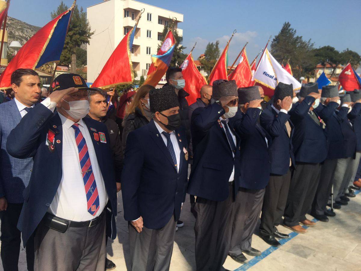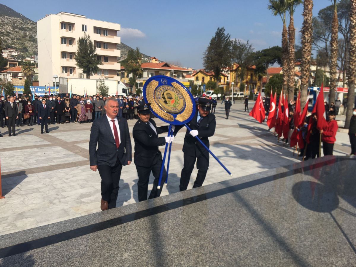 Kaymakamlık, Garnizon Komutanlığı, Belediye Başkanlığı ve Şehit Aileleri çelenklerinin sunulmasının ardından saygı duruşunda bulunuldu ve İstiklal Marşı okundu.