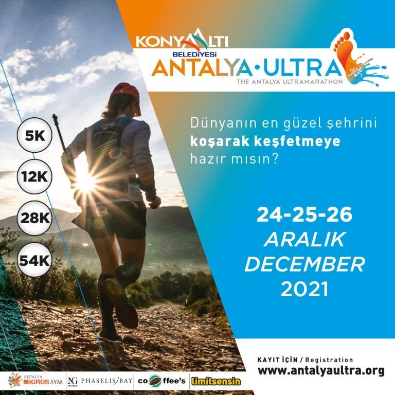 Konyaaltı Belediyesi, “Dünya’nın en güzel şehrini koşarak keşfetmeye hazır mısın?” sloganıyla Antalya’da ilk kez 4 farklı parkurdan oluşan Konyaaltı Belediyesi Antalya Ultra Maratonu’nu düzenledi. 25 Aralık 2021 Cumartesi günü Antalya Konyaaltı Belediyesi ana sponsorluğunda Limit Sensin Firması Organizasyonu’nda gerçekleştirilen Antalya Ultra Maratonu, katılımcıların insanüstü mücadele sergilediği bir yarış oldu.