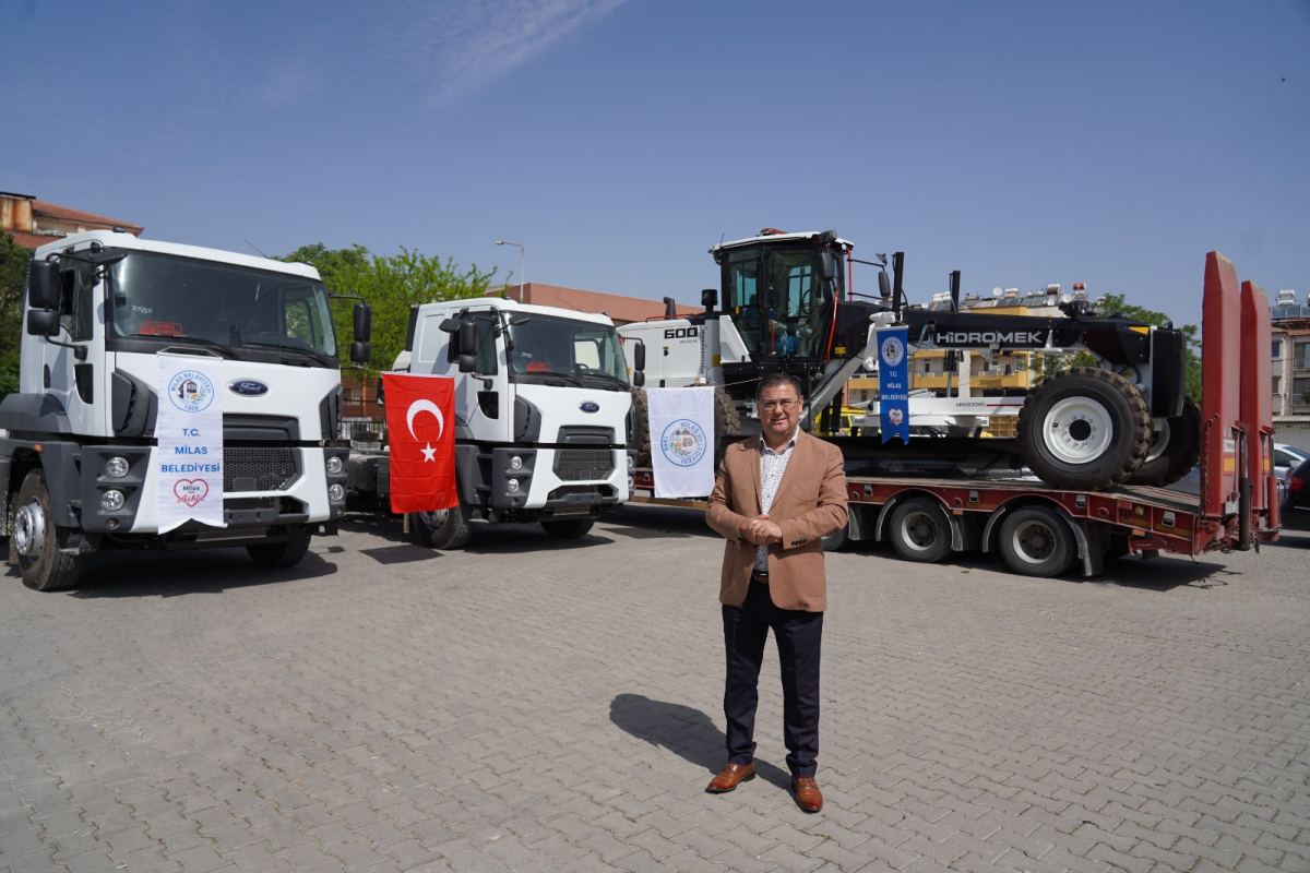 Vatandaşlara daha etkin ve daha kaliteli hizmet vermek adına araç envanterini güçlendirdiklerini belirten Milas Belediye Başkanı Muhammet Tokat; “Belediyemiz tarihinde ilk defa aldığımız greyder ve 2 adet kamyon bugün itibariyle araç filomuza katıldı. Araçlar dış giydirme çalışmalarının tamamlanmasının ardından ilçemiz sokaklarında vatandaşlarımızın hizmetinde olacak. Araçlarımızın Belediyemize ve tüm vatandaşlarımıza hayırlı uğurlu olmasını diliyorum” dedi.