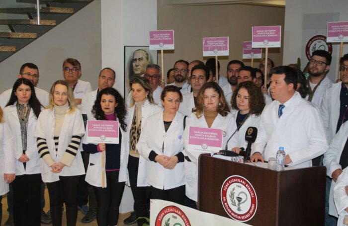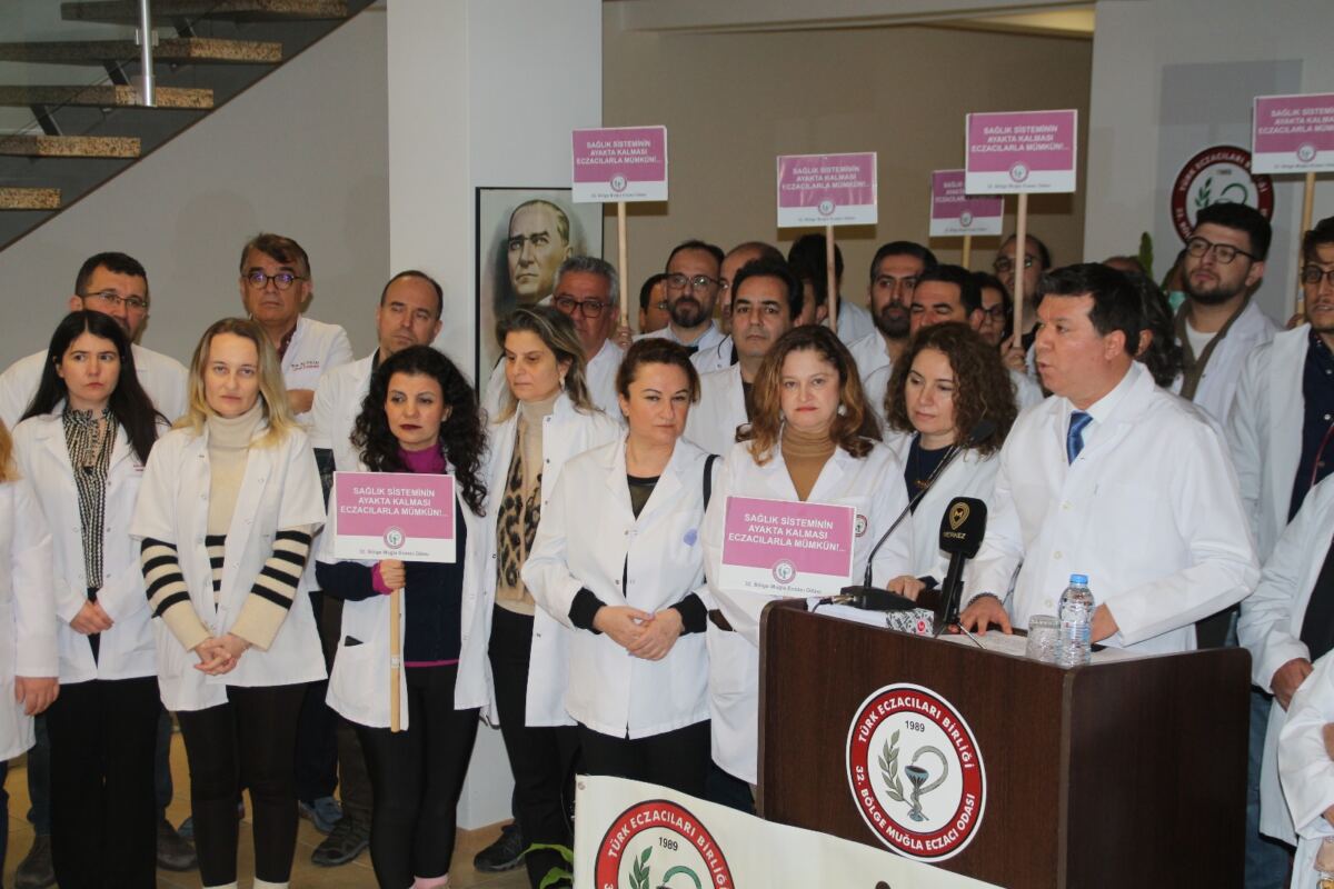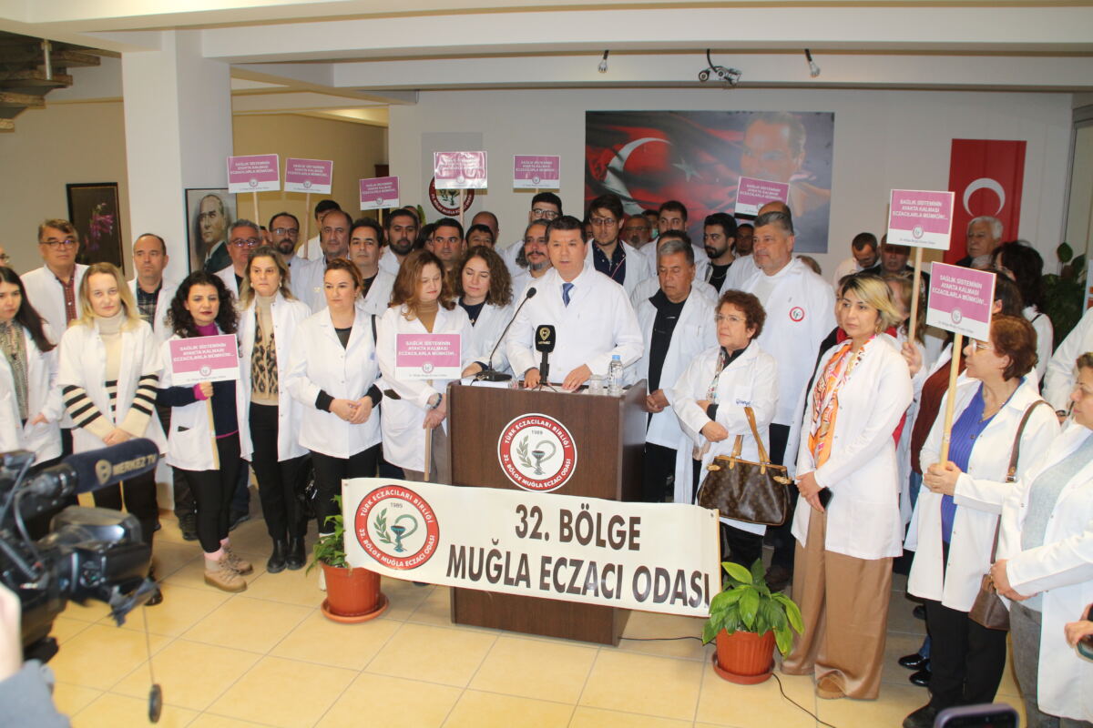 Muğlalı eczacılar 32. Bölge Muğla Eczacı Odası’nda bir araya gelerek basın açıklaması yaptılar. Oda Başkanı Saim Korkmaz, eczanelerin ekonomik zorluklar ve ilaç tedarik sorunlarıyla karşı karşıya olduğunu belirterek yetkililere acil önlem alınması çağrısında bulundu. Korkmaz, “Haklı taleplerimizin karşılanması için gerekli adımlar atılsın, sağlık kapınız açık kalsın” dedi.