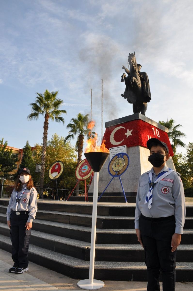 Anma programı kapsamında ilk etkinlik Atapark’taki Atatürk Anıtı önünde gerçekleşti. Dr. Mete Ersoy Anadolu Lisesi tarafından hazırlanan anma programı, saat 09.00’da Atatürk Anıtı’na çelenk sunumu ile başladı. Çelenk sunma törenin ardından saat 09.05’i gösterdiğinde siren sesleri eşliğinde saygı duruşunda bulunulması ve İstiklal Marşımızın söylenmesi ile törenin Atapark’taki bölümü tamamlandı.