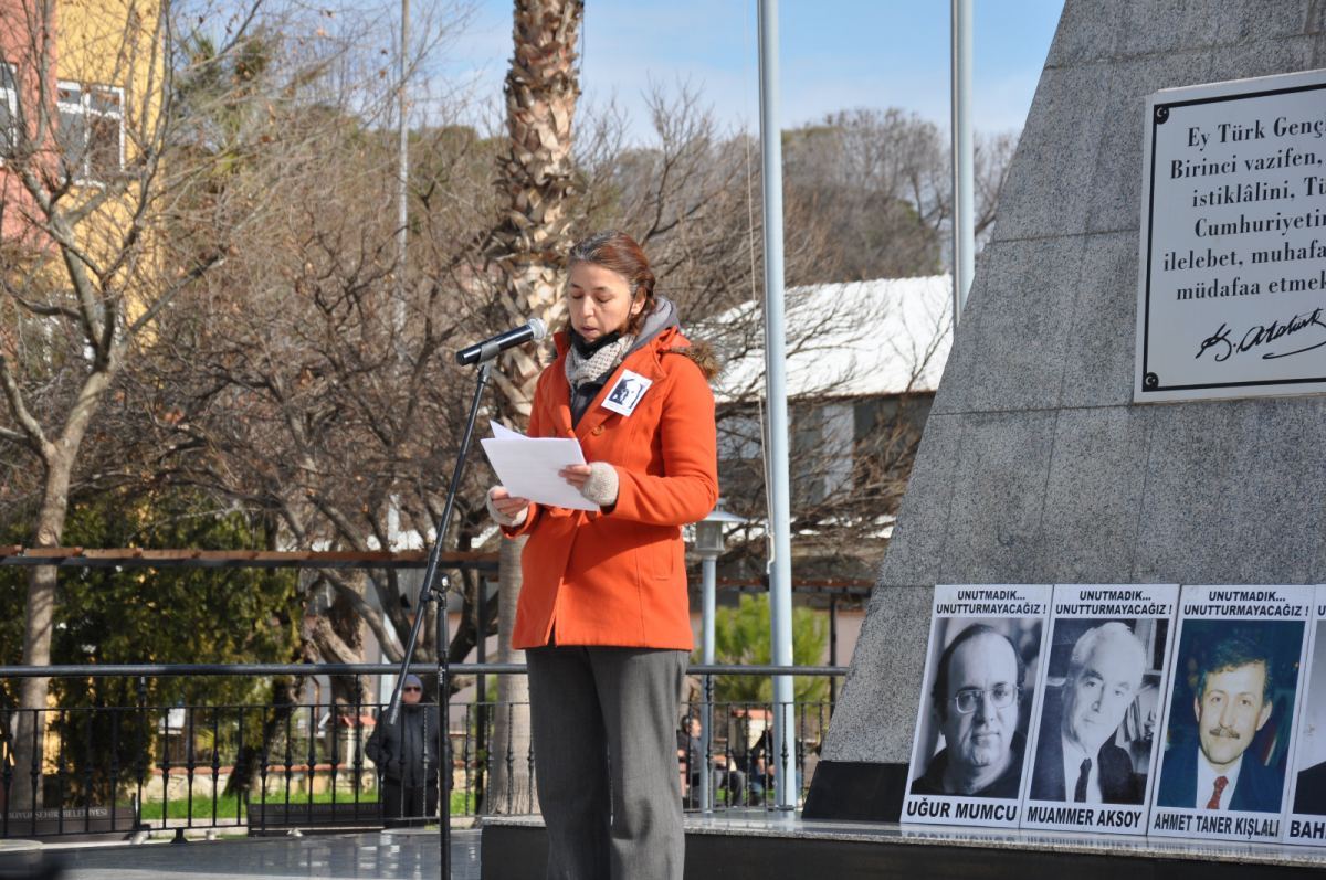 Abdi İpekçi, Muammer Aksoy, Bahriye Üçok ile başlayan seri cinayetlerin Uğur Mumcu’nun katledilmesi ile yeni bir boyut kazandığının vurgulandığı basın açıklamasında “Türk halkı değerli aydınlarını yok eden bu cinayetleri ve öldürülen kahramanlarını hiç unutmayacak, bu terör ortamı karşısında asla umutsuzluğa kapılmayacak ve bir gün mutlaka ama mutlaka bu cinayetlerin hesabını soracaktır” sözleri vurgulandı.