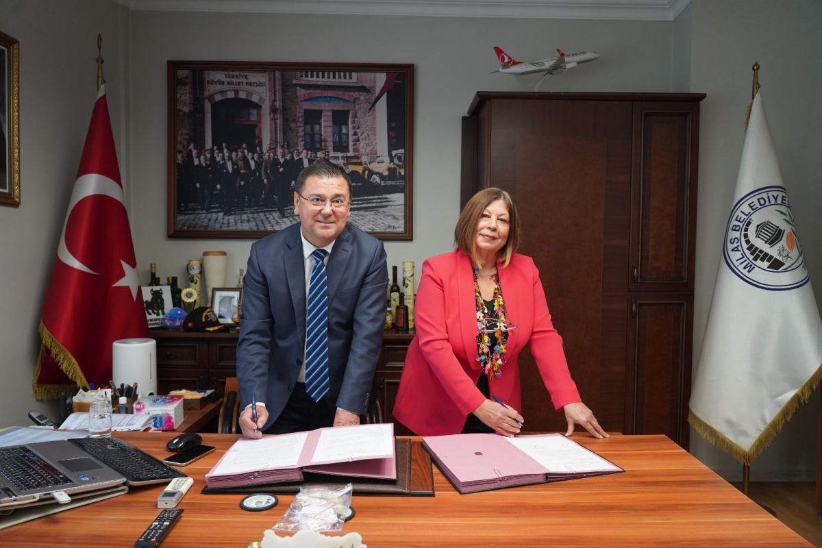 Gerçekleştirilen protokol imza törenine Milas Belediye Başkanı Muhammet Tokat, Milas Belediyesi Tarımsal Hizmetler Müdürü Süleyman Karatoprak ve Jale Eren katıldı.