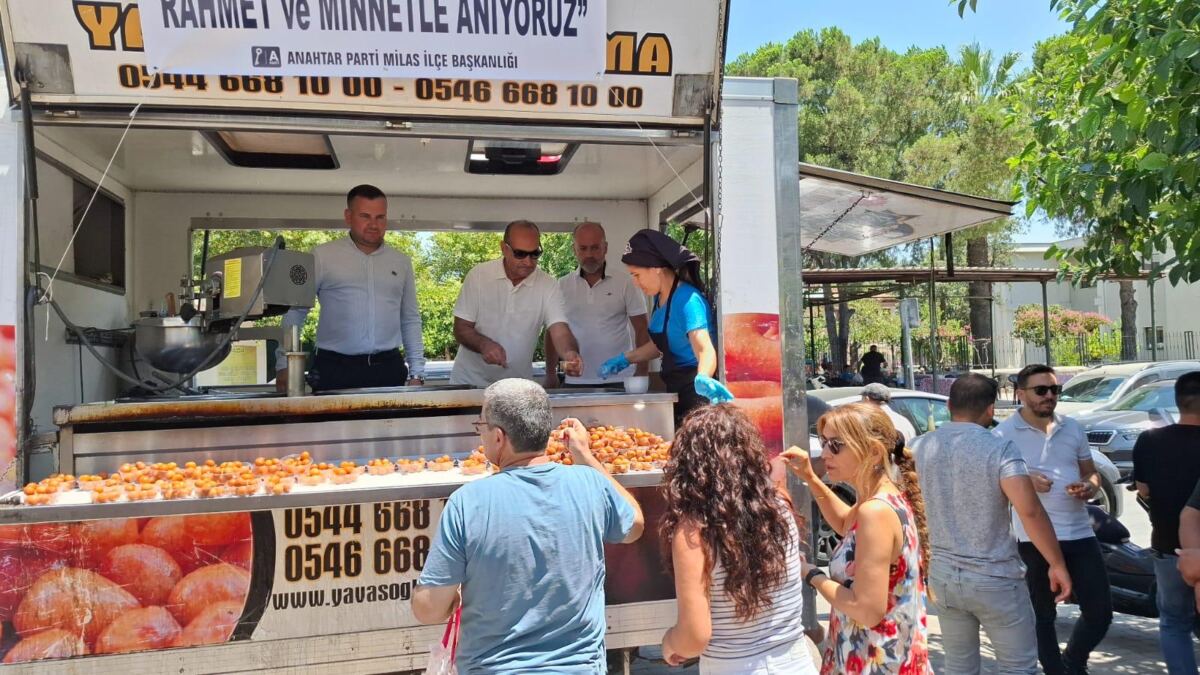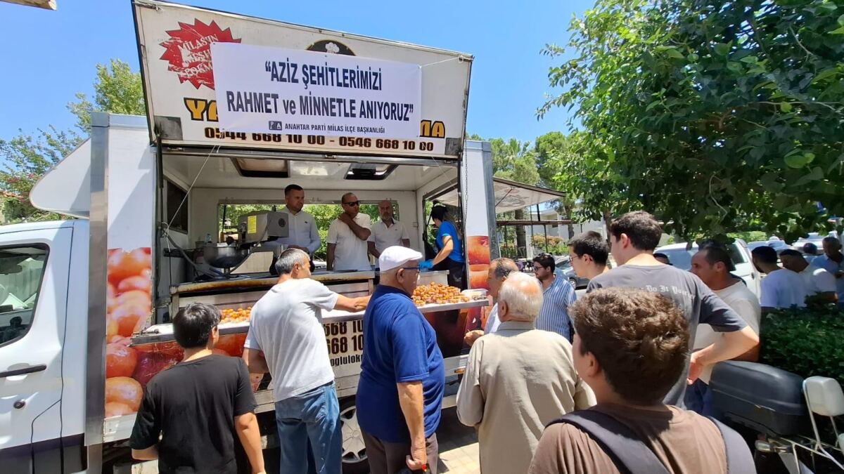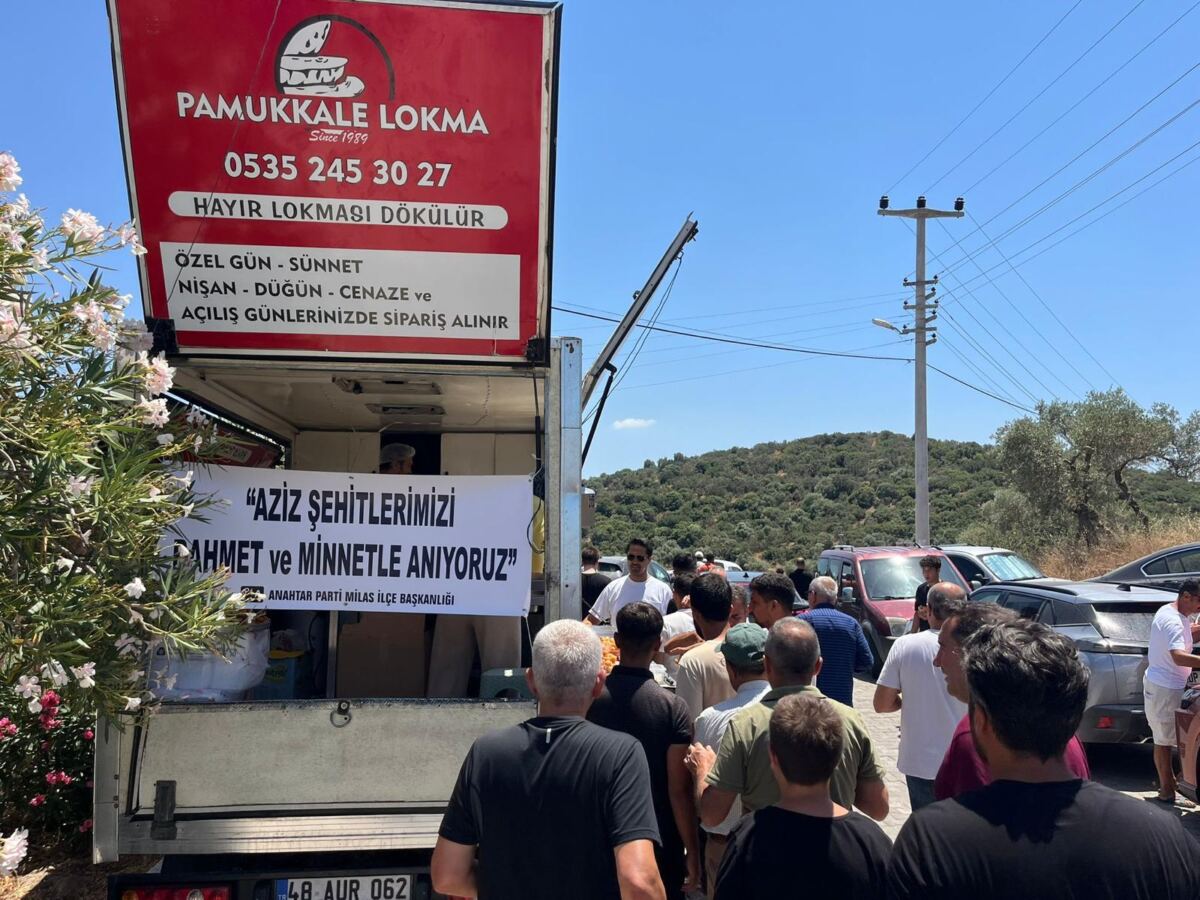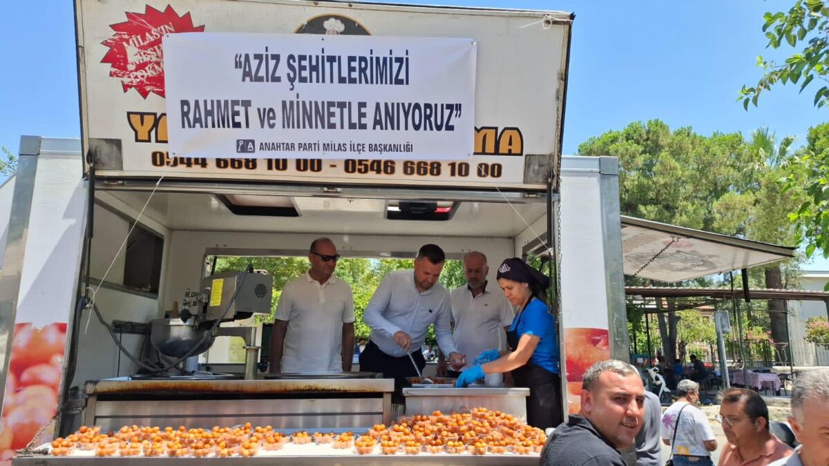 Anahtar Parti Milas İlçe Başkanlığı, vatan uğruna toprağa düşen 12 kahraman şehidin aziz hatırasını yâd etmek ve minnet duygularını ifade etmek amacıyla hayır lokması dağıttı.