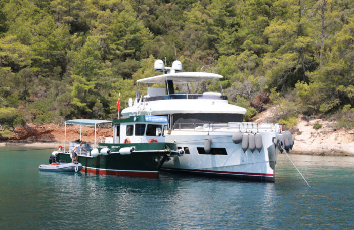 Muğla Büyükşehir Belediyesi 8 adet atık alım teknesiyle Muğla’nın denizleri ve koylarında teknelerden atık topluyor.