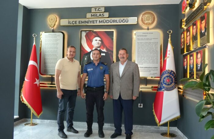 Milas İlçe Emniyet Müdürü Oktay Boydak’a çiçek takdim eden Başkan Topuz ise ilçede huzur ve düzeni sağlama, insanların can ve mal güvenliğini korumak için karşılıklı işbirliğiyle çalışmaların yürütülmesi gerektiğini vurgulayarak, İlçe Emniyet Müdürü Boydak’a misafirperverliğinden dolayı teşekkür etti.