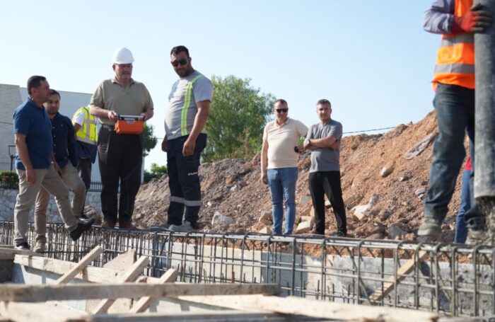 Temel atma töreninin ardından alanda incelemeler de gerçekleştiren Başkan Topuz, Çok Amaçlı Sosyal Alan’ın çevresinde yapılacak çalışmalar ve mahallede devam eden parke kaplama faaliyetlerini yerinde inceledi.