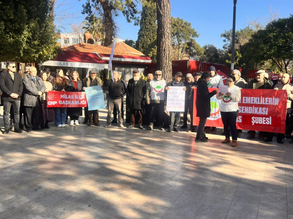 Tüm Emeklilerin Sendikası Milas Şubesi tarafından ilçemizde oturma eylemi ve basın açıklaması yapıldı. Açıklamada; “Bütün emeklilerin aylığına ek makul bir artış yapılmalıdır. Geçen yıl emekliye ayrılan paydan kırptığınız 282 milyarı da ekleyip, emekli aylıklarına yansıtınız. Böylece her emeklinin aylığına 20 000 lira seyyanen zam yapınız” ifadelerine yer verildi.