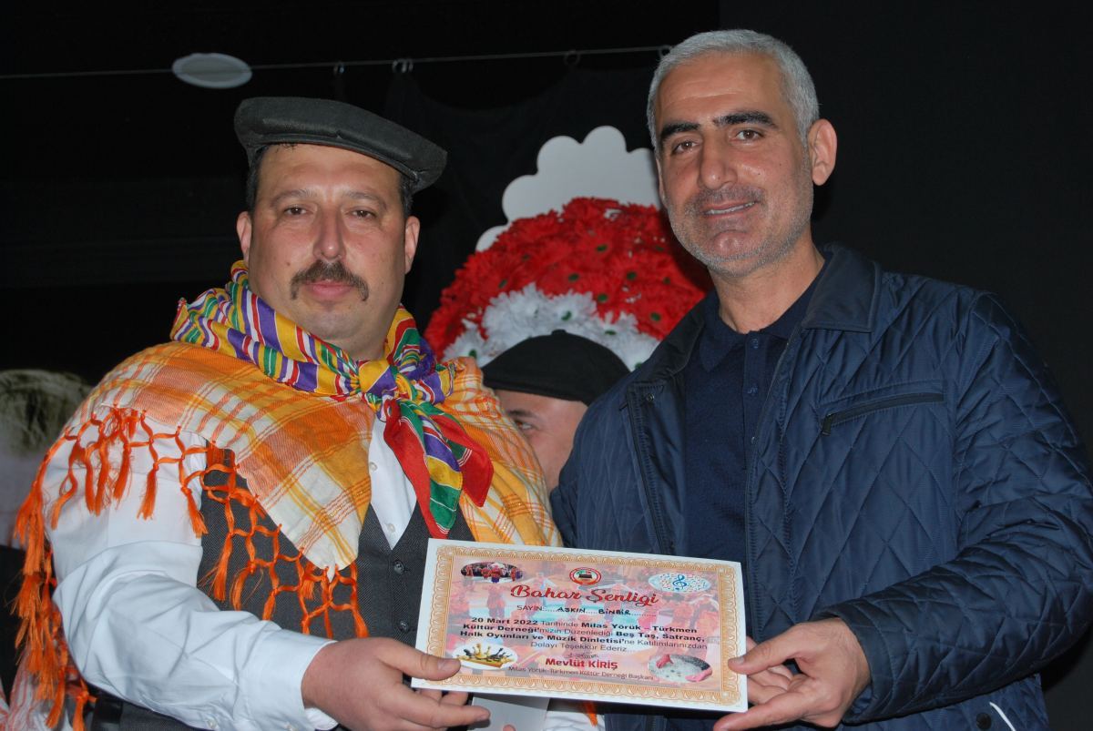 Milas Yörük Türkmen Kültür Derneği’nin kuruluş amaçlarından bir tanesinin de unutulmaya yüz tutmuş bütün olayları günümüze taşımak ve yaşatabilmek olduğunu hatırlatan Başkan Kiriş, “Bugün ki etkinliğimizde de geçmişten günümüze bir bağ kurup, satranç ve beş taşı birbiriyle bütünleştirerek bugünün büyüklerinin eskiden oynadığı beştaşı hatırlatmak ve çocuklarımıza öğretmek istedik. Ayrıca çocuklarımıza simit, ayran, süt, su ve fıstık ikram ederek sağlıklı gıda ile sağlıklı bireyler yetiştirmenin çabasını anlatmayı hedefledik. Çünkü günümüzde en önemli sorun mevsiminde yetişmeyen sebze ve meyvelerin tüketimi, sağlıksız ürünlerin içine tatlandırıcılar katılarak çocuklarımıza lezzetli gibi sunulmasıdır. Maalesef bu sistem yüzünden çocuklarımız gıda terörüne kurban edilmekte ve neslimizin genetiğini bozarak anomalili çocukların doğmasına sebep olmakta. Buradan bizim evlatlarımız ruhen ve bedenen sağlıklı yetiştirilmesi gerektiğinin sonucunu çıkarmalıyız. Derneğimiz adına bütün katılımcılara, dernek üyelerimize ve evlatlarımıza bugün bizlerle baharı kutladığınız ve oyunlarla bizlere destek olduğunuz için teşekkür ederim” dedi.
