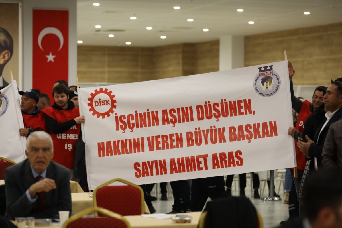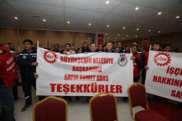 Aras, “Hep birlikte emeğin onurunu savunduğumuz, dayanışmayı büyüttüğümüz, hakça bir düzeni savunduğumuz bir gün. Bu anlayışla, DİSK Genel-İş Sendikası ile gerçekleştirdiğimiz toplu iş sözleşmesi kapsamında çalışanlarımızın maaşlarında ortalama %41,50 oranında bir artış sağladık. Geçtiğimiz yıl yapılan ara zamlarla birlikte bu artış oranı %56’ya ulaştı. Yeni sözleşmemizle birlikte, belediyemizde en düşük maaşı 43 bin 559 TL’ye yükselttik. Ancak sadece ücretleri artırmakla yetinmedik; çalışanlarımızın sosyal haklarını güçlendiren, refahlarını artıran pek çok yeni düzenlemeyi de hayata geçirdik. Yaptığımız iyileştirmelerle en düşük çalışanımızın maaşını asgari ücretin iki katına çıkardık. İşçilerimizle, sendikalarımızla kavga eden değil; onlarla el ele veren, ortak akıl ve dayanışma ile çözümler üreten bir belediyeyiz. Çünkü biz şunu çok iyi biliyoruz: İnsanı insan yapan emektir ve insana hizmet ancak insanla mümkündür. Belediyemizin her başarısı, bu kentin her ilerleyişi, burada alın teri döken işçi kardeşlerimizin emeğiyle mümkün oluyor. Bugün burada imzaladığımız toplu iş sözleşmesi, bu anlayışımızın bir yansımasıdır. Çalışanlarımızın emeğini korumak, haklarını en iyi şekilde savunmak bizim temel sorumluluğumuzdur. Muğla, emeğin, eşitliğin ve adil paylaşımın şehri olmaya devam edecek” dedi.