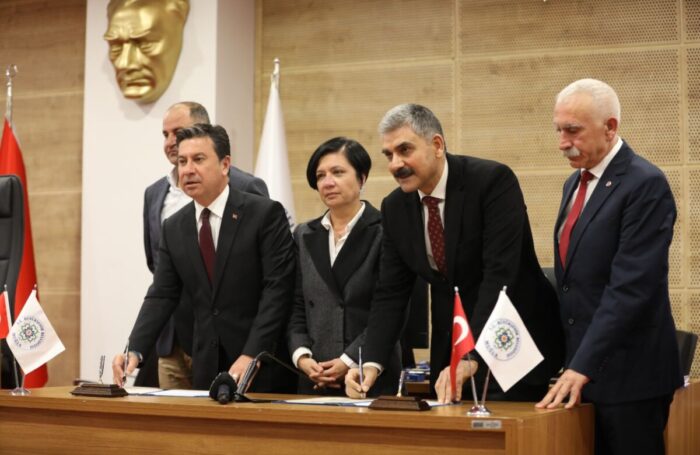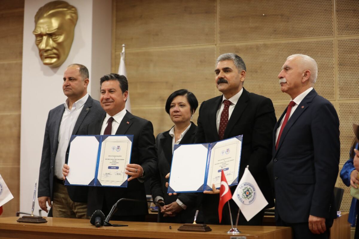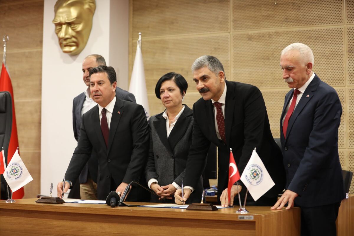 Muğla Büyükşehir Belediye Başkanı Ahmet Aras ve DİSK Genel İş Genel Başkanı Remzi Çalışkan Türkan Saylan Çağdaş Yaşam Merkezi’nde düzenlenen protokolle 3 bin 912 personeli ilgilendiren Toplu İş Sözleşmesi’ne imzaları attı.