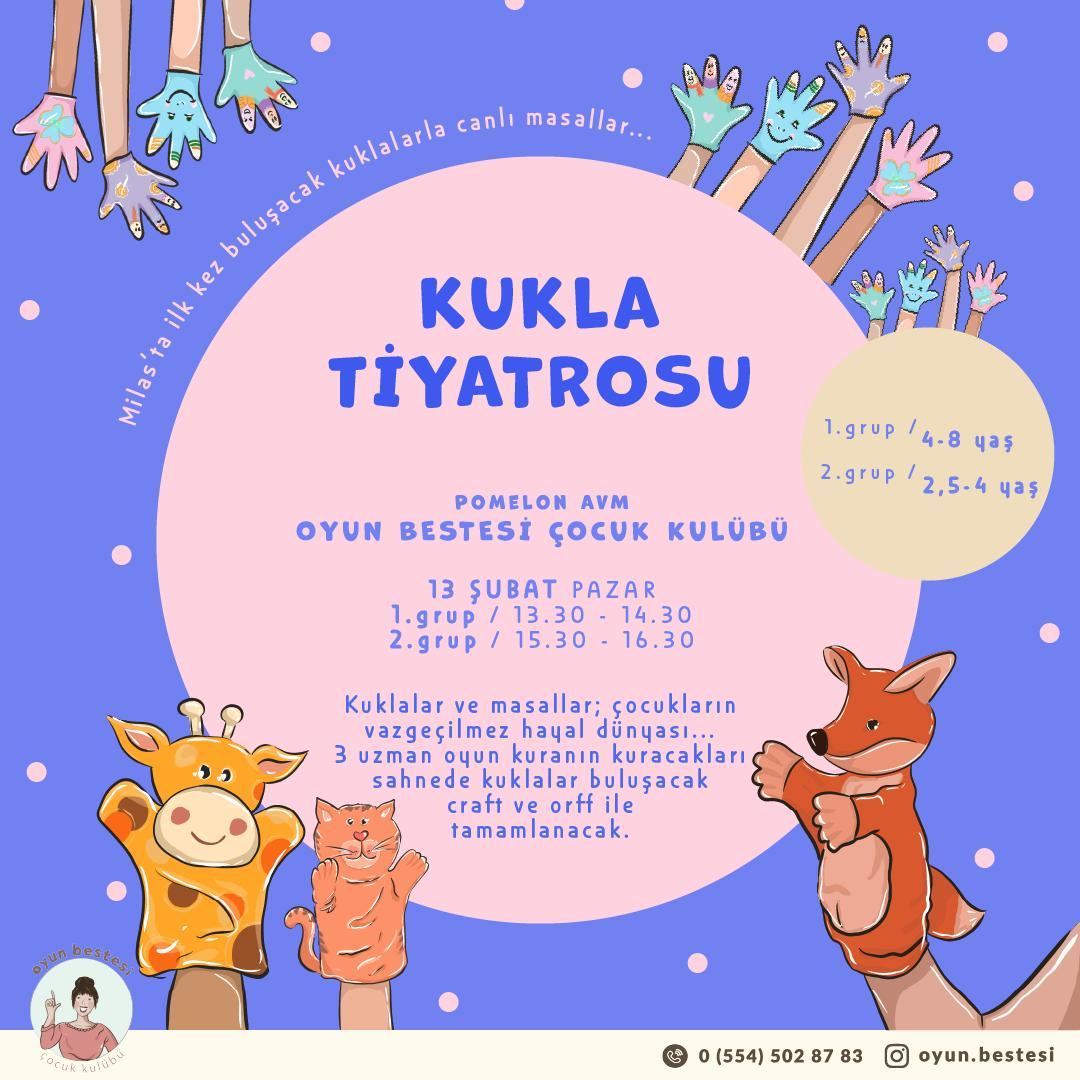 13 Şubat Pazar günü ise 13.30-14.30 ve 15.30-16.30 saatleri arasında 2 grup halinde Kukla Tiyatrosu ile çocuklar hayal dünyalarında eğlenceli bir yolculuğa çıkacaklar. Pazar günü düzenlenecek etkinlik ‘ücretli’ olup afişteki irtibat telefonundan rezervasyon yaptırılabilecek.