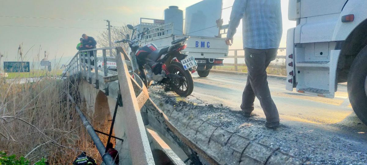 Edinilen bilgiye göre Ercan Y.’nin kontrolünde seyreden 48 AGU 815 plakalı motorsiklet kontrolden çıkarak su kanalı üzerinde bulunan köprünün demirlerine çarptı.