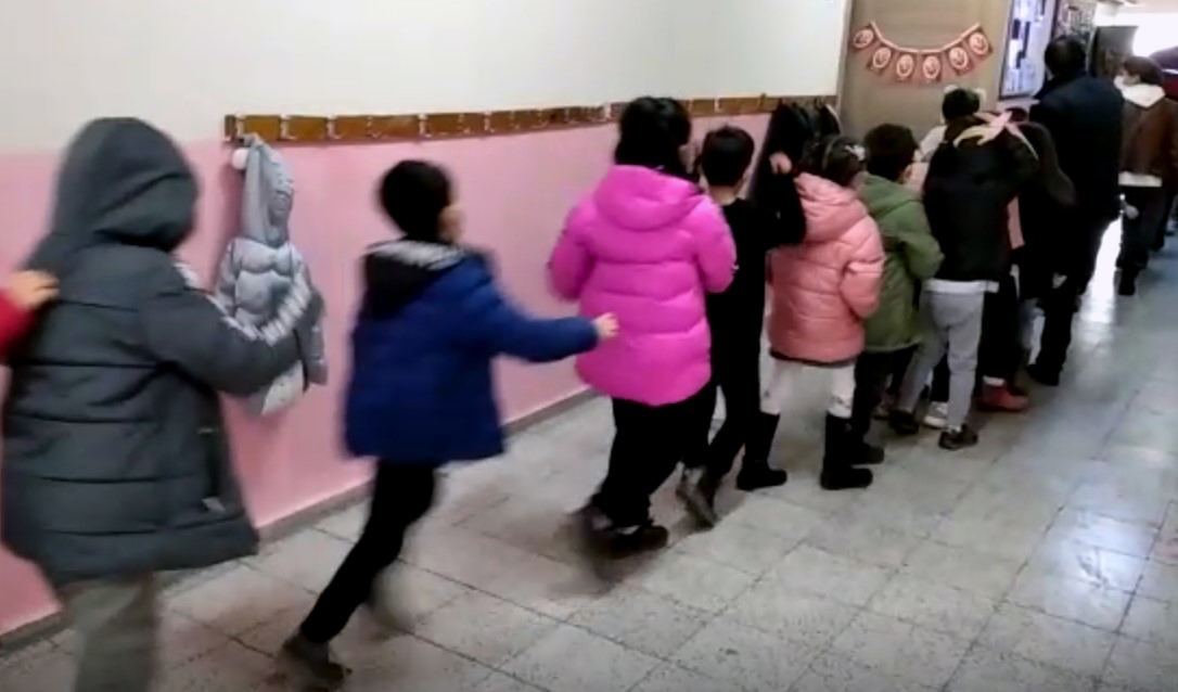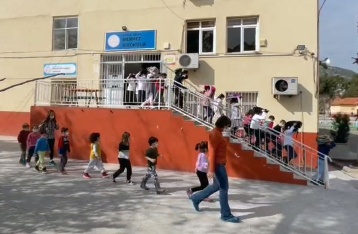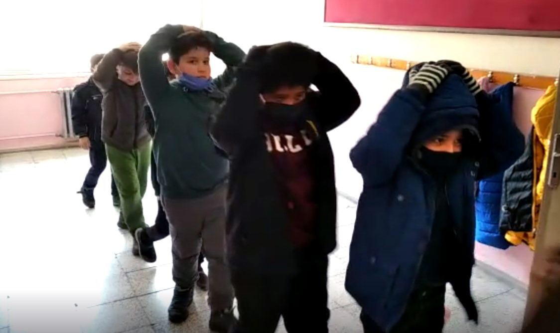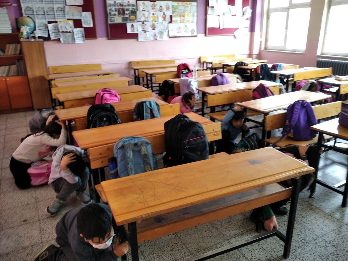 Çocuklarda deprem bilincini uyandırmak, farkındalık yaratmak amacıyla düzenlenen tatbikata hazırlıksız yakalanan çocukların önceden öğrenmiş oldukları bilgileri pratik yaparak tekrarladı.