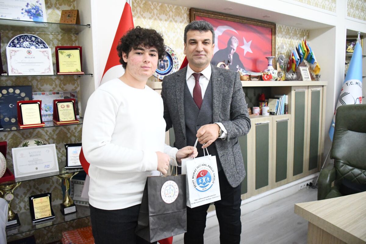 Genç Bilaller Güzel Ezan Okuma Yarışması’nda Muğla İl Birincisi olan Şehit Murat İnci İmam Hatip Ortaokulu öğrencisi Hakkı Bayezid Sarı, Genç Sada Kur’an-ı Kerim’i Güzel Okuma Yarışması’nda Muğla 2.’si olan öğrenci Semih Şahin, ve Genç Hatipler Hutbe Okuma Yarışması’nda Muğla İl Birincisi olan Şehit Murat İnci Anadolu İmam Hatip Lisesi öğrencisi Bedirhan Bilir, elde ettikleri başarıların ardından Milas İlçe Millî Eğitim Müdürü İsa Bal’ı ziyaret ettiler.