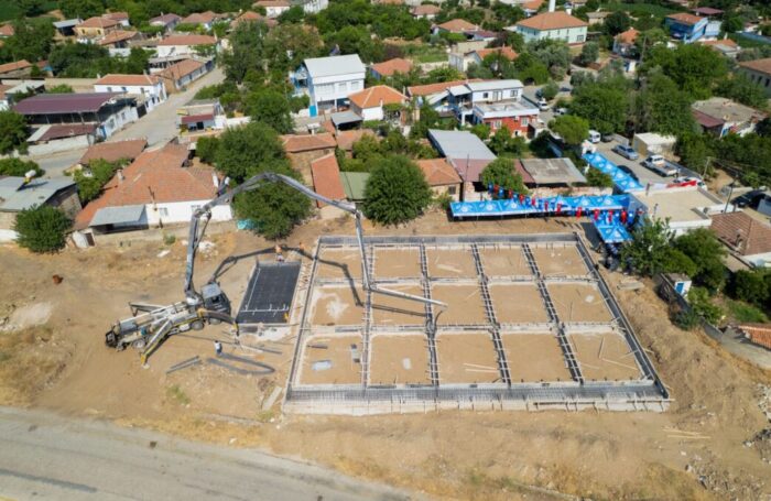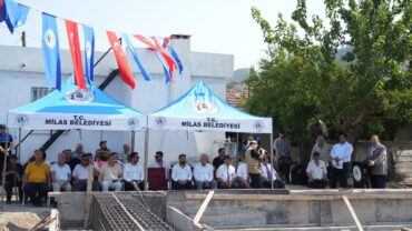 Toplamda 900 m2 civarında alana inşaa edilecek Çok Amaçlı Sosyal Alan’ın beton pompasının kumandasına basan Milas Belediye Başkanı Fevzi Topuz ilk betonu alanla buluşturdu. Çevresinde mutfak ünitesi, tuvalet, yemek pişirme alanı ve gelin odasının da bulunacağı sosyal alanın yanında çocuk oyun grubu da yer alacak.