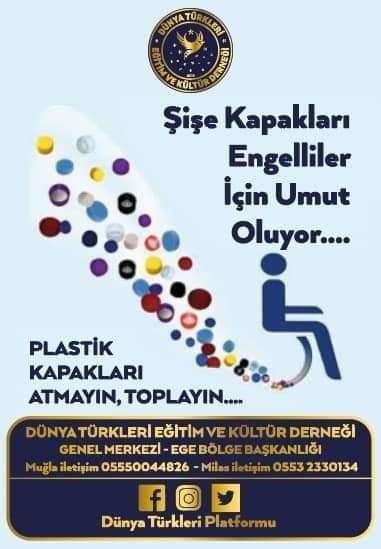 Dünya Türkleri Eğitim ve Kültür Derneği, “Plastik Kapakları Atmayın, Toplayın” sloganıyla başlattığı kampanya ile temin ettiği tekerli sandalyeyi ihtiyaç sahibi vatandaşa teslim etti. Kurucu Genel Başkan Oya Canbazoğlu ile birlikte Genel Başkan Yardımcısı Erhan Sayın ve Milas Kültür ve Sosyal Etkinlikler Başkanı Mevlüt Korkmaz’ın birlikte yürüttüğü kampanya sonucunda bir vatandaşımızın yüzü güldü.