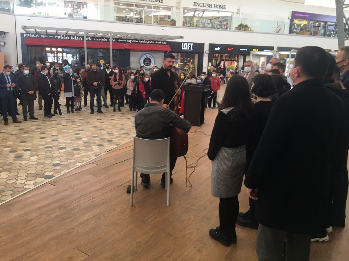 Remzi Ozan Mehmet Kadıoğlu Özel Eğitim Uygulama Okulu’nun öğrencileri ile birlikte “Uzun İnce Bir Yoldayım” türküsünü seslendiren katılımcılar, sonrasında söylenen şarkılara da alkışlarla eşlik ettiler.