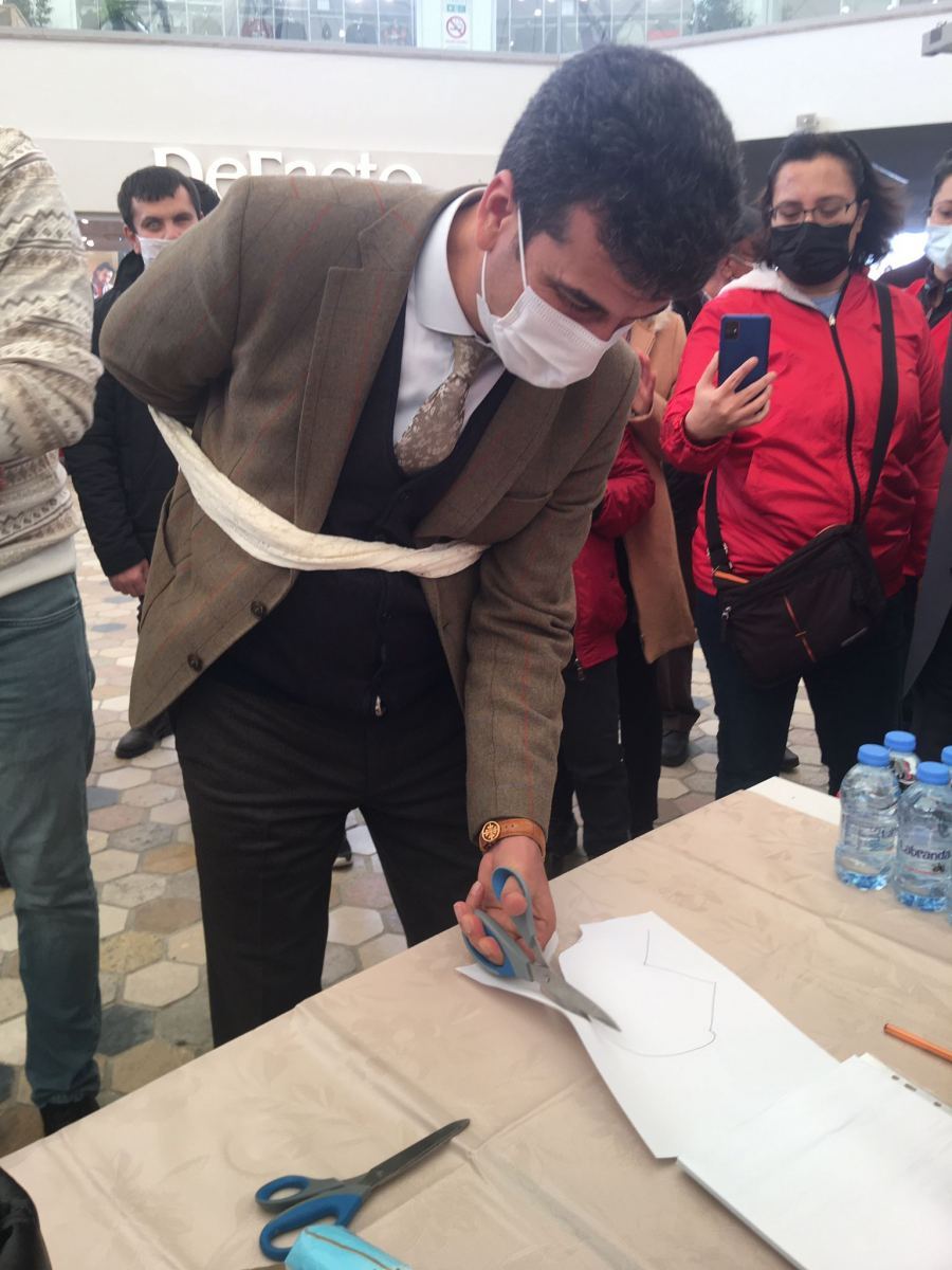 Programda engelli vatandaşlarımızın yaşadıklarını hissedebilmek, bir nebze olsun onları anlamak adına Kaymakam Böke gözleri bağlı olarak belirli bir mesafe yürümeye, İlçe Milli Eğitim Müdürü Bal tek kolu bağlı olarak şekil kesmeye, Garnizon Komutanı V. Hava Tabip Binbaşı Sorkaç ise tekerlekli sandalye ile ilerlemeye çalıştı.