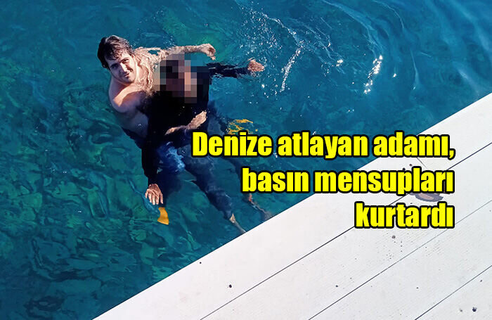 Edinilen bilgiye göre, ailevi sorunlar yaşadığı iddia edilen Şeref B., ilçedeki bir gazeteye ulaşarak Gümbet Mahallesi’nde ayağına kum torbası bağlayıp iskeleden aşağı atlayacağını söyledi. İhbarı alan basın mensupları olay yerine geldiğinde Şeref B. denize atladı. Şahsı kurtarmak için basın mensupları da denize atladı. İskeleye bağlı bir motoryattan bıçak alınarak Şeref B.’nin ayağındaki ip kesildi ve sonra bota bindirilen şahıs karaya çıkarıldı. İhbarın ardından olay yerine 112 Acil Sağlık ve polis ekibi sevk edildi. Şeref B., sağlık ekipleri tarafından ayakta tedavi edildikten sonra ifadesi alınmak üzere karakola götürüldü.