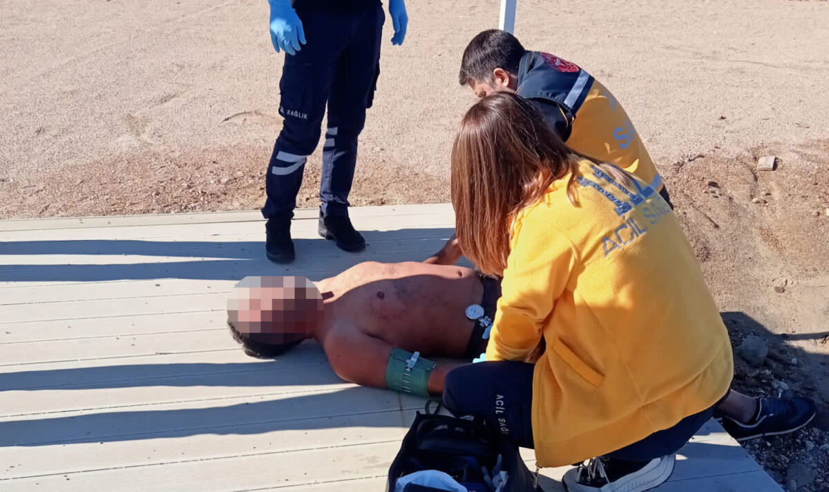 Bodrum’da ayağına kum torbası bağlayıp denize atlayan şahıs, basın mensupları tarafından kurtarıldı.