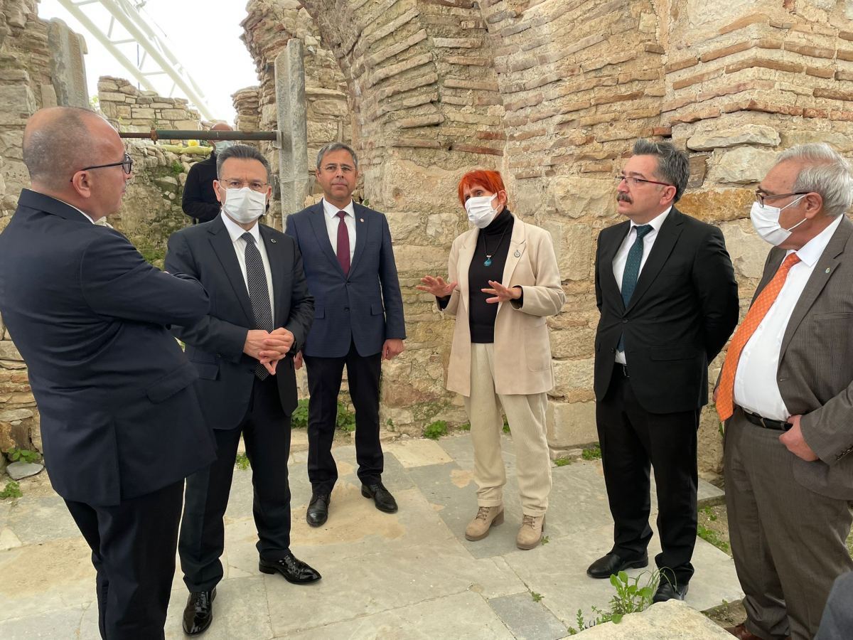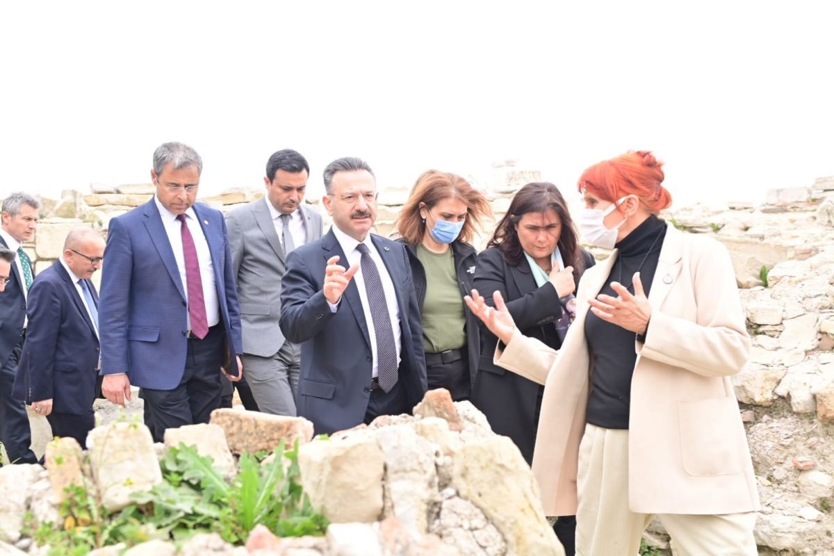 Prof. Dr. Zeynep Mercangöz, proje kapsamında gerçekleştirilen kazı ve restorasyon çalışmaları hakkında kurul üyelerine bilgi verirken antik yerleşimin bölge için önemine değindi. Prehistorik dönemden, I. Dünya Harbi Osmanlı top siperlerine kadar uzanan zengin kültür katmanlarının bulunduğu Kadıkalesi-Anaia Antik Kenti’nde proje kapsamında öncelikle anıtsal boyutlu kilisenin ortaya çıkartıldığını söyledi. Kuşadası Anaia sahil yerleşiminin Orta Çağ’da yapılmış liman kalesi olan Kadıkalesi’nde yürütülen proje kapsamında, Kale’deki anıtsal kilisenin geçici modüler örtüsünün sökülerek, yerine kilise yapısındaki zemin ve duvarlarda bulunan resimleri yağışlara ve güneşin zararlı ışınlarına karşı koruyacak çağdaş bir çatı kurulduğunu belirtti. Arkeolojik açıdan renkli bulgu ve öyküleriyle yerli ve yabancı ziyaretçilerini etkileyecek olan Kadı Kalesi’nin yapılan çalışmalarla kültür turizminde cazibe noktası olacağını da sözlerine ekledi.