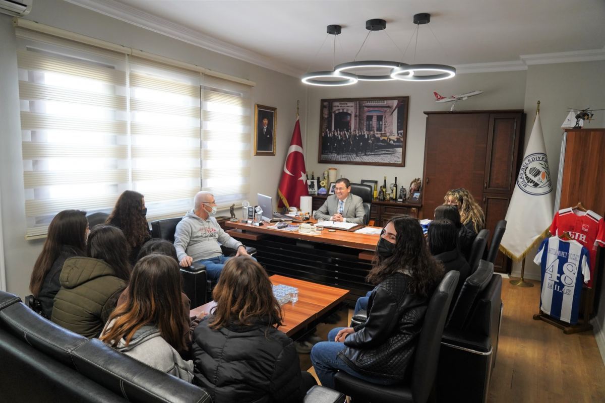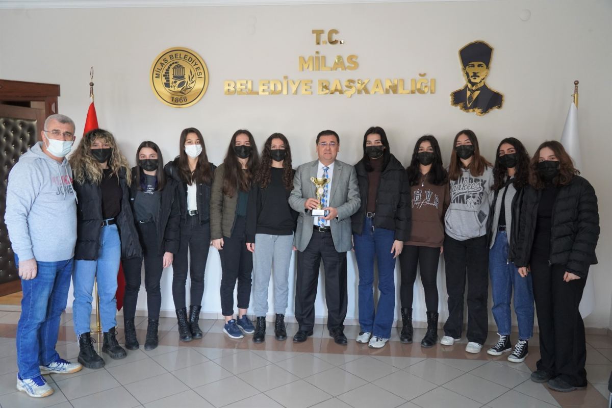 Milas Belediyespor Genç Kızlar Voleybol Takımı oyuncuları ve antrenör Eşref Mete, Milas Belediye Başkanı Muhammet Tokat’ı makamında ziyaret etti.