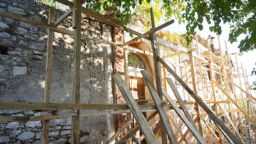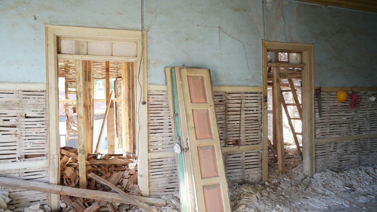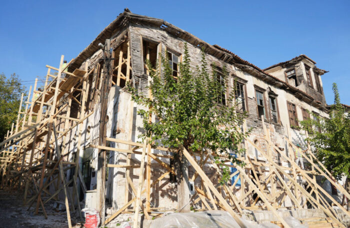 Yıllara meydan okuyan, bir kısmı hasar görse de hala ihtişamını koruyan konak için restorasyon çalışmaları öncesinde çevre güvenliği ve çalışma alanı oluşturmak için çevre temizlik çalışmaları devam ederken binanın restorasyon öncesi bozulan alanlarının sökülmesi ve askıya alma iskelesi kurulumu başladı.