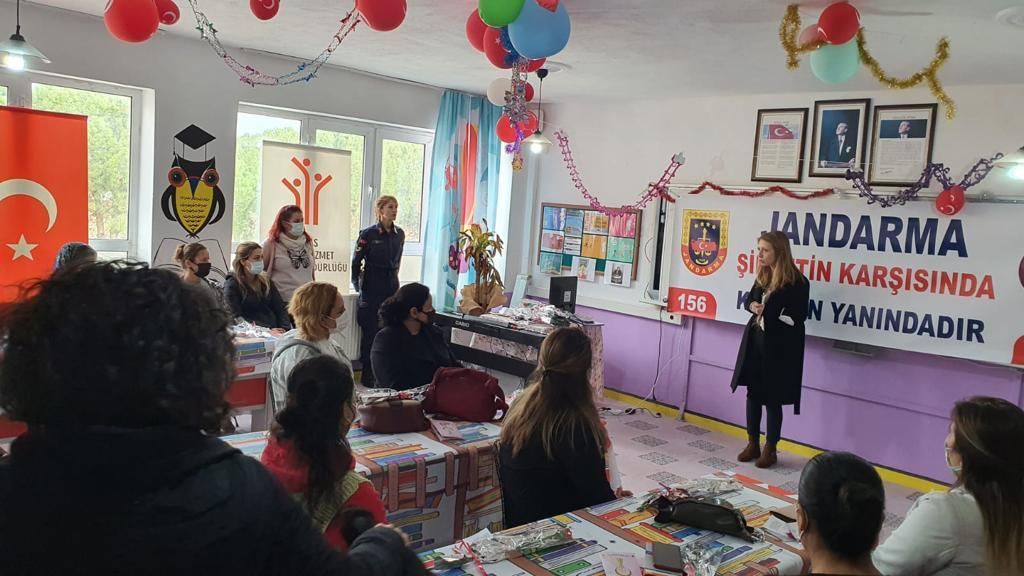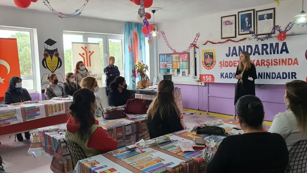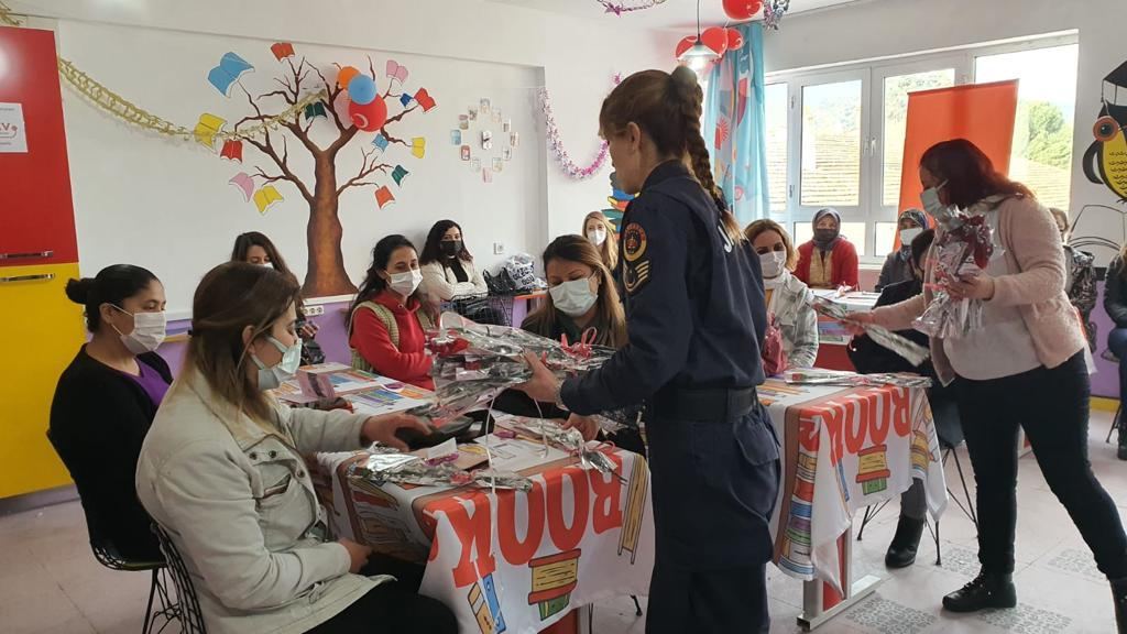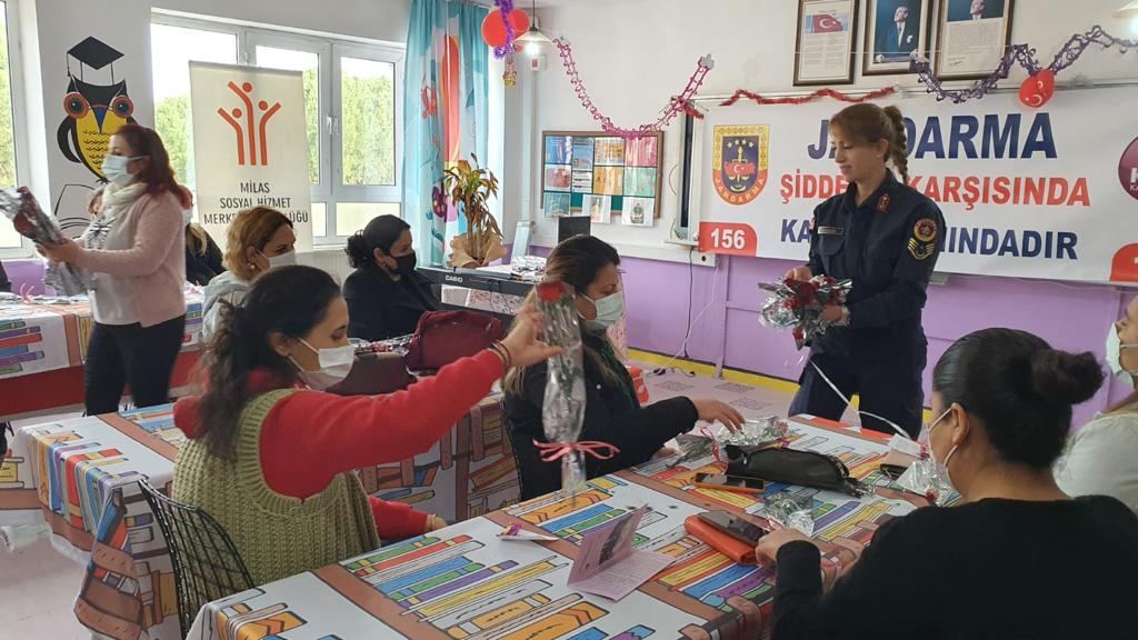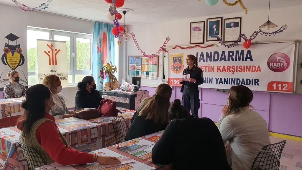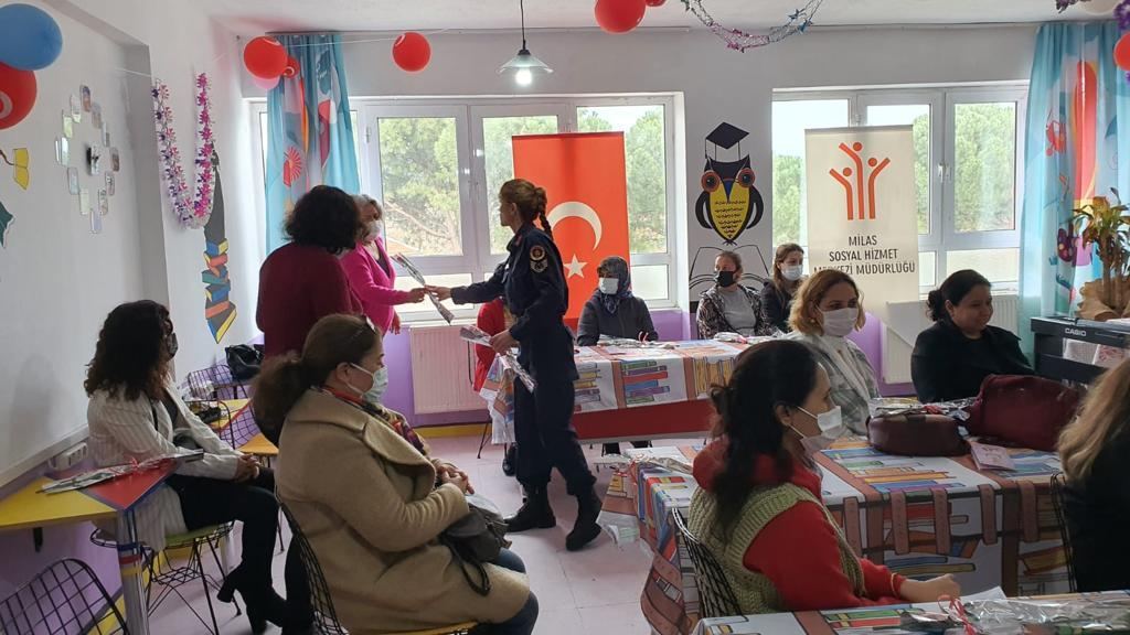 Milas İlçe Jandarma Komutanlığı Aile İçi Şiddetle Mücadele ve Çocuk Kısım Amirliği ekipleri tarafından yapılan etkinlikte Kadın Destek (KADES) uygulamasının tanıtımı yapıldı.
