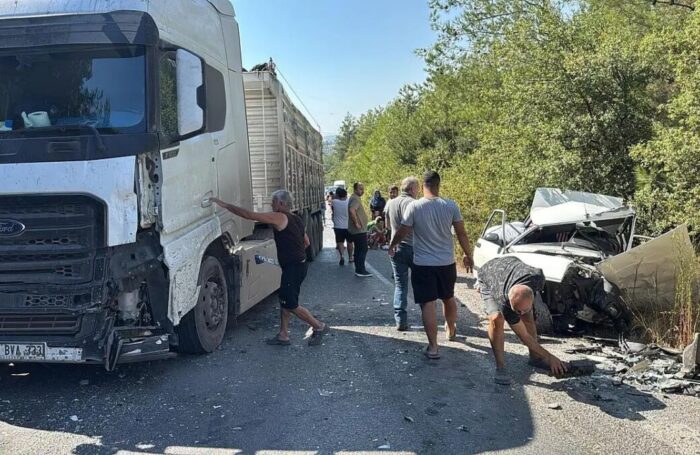 İddiaya göre Milas’tan Ören’e doğru seyreden iki kamyondan 35 BVA 333 plakalı kamyon sollama yaptığı sırada karşı yönden gelen otomobil ile kafa kafaya çarpıştı.
