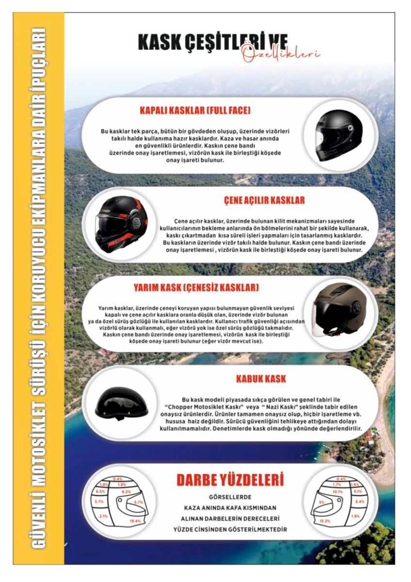 2024 yılında meydana gelen ölümlü ve yaralanmalı trafik kazalarının yapılan analizleri sonucunda kazaya karışan araç cinsi olarak yaklaşık yüzde 50 oranında kazaya motosiklet ve motorlu bisiklet cinsi aracın karıştığı tespit edildi. Kazaya karışan sürücü ve yolcuların Karayolları Trafik Yönetmeliğinde belirtilen şartlara uygun olmayan kask türü kullandıkları ve koruyucu ekipman kullanımının yok denecek kadar az olduğu belirlendi.