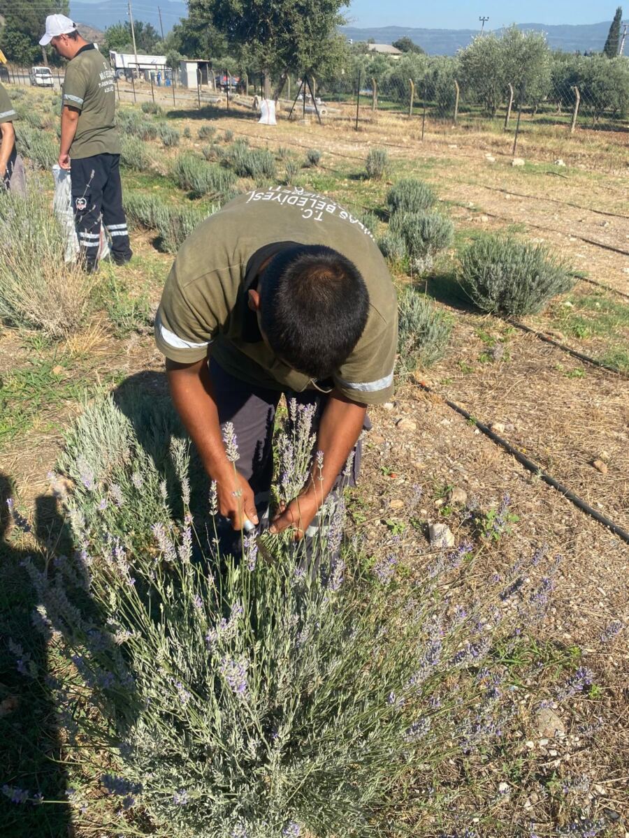 Milas Belediyesi tarafından dikimi yapılan lavanta fidelerinin çiçek açmasının ardından hasadı yapıldı.