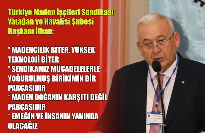 “Madenlerin planlı şekilde hemen işletmeye alınması lazımdır. Elde bulunan madenler için bir plan yapılmalıdır. “Plan ve program kadar işçi sağlığı da önemlidir. Sendikalı olmak, işçi sağlığının teminatıdır. Sendika işçilerin çalışma koşulları hakkında sözlerini üretebildikleri, bu koşulları değiştirmek için mücadele verebilecekleri bir alandır. Madende çalışırken işçilerin birbirinden helallik istedikleri meslekten bahsediyoruz. İşçi sağlığı madenciliğin kırmızıçizgisi oldukça, madencilik gelişecektir. Bu vesileyle, bugüne kadar iş kazalarında yitirdiğimiz maden, enerji ve diğer iş kollarımızdaki işçi kardeşlerimizin ailelerine başsağlığı diliyoruz. Gelelim çevre meselesine. Maden doğanın karşıtı değil parçasıdır. Mesele doğanın bir parçasıyla üretim yaparken diğer parçasını gözden çıkarmamaktır. Sağlıklı yaşanabilir bir çevre, maden zenginliğimizi yaşama kazandırmanın da bir anahtarıdır. Türkiye madenciliği bu konuda mesafe almıştır. Alacak mesafe olduğunu da kabul ediyoruz. Sendikal yaşam çevreyi koruyan bir madencilik için de önemli imkânlar sunuyor. Çünkü sendikal mücadele basit bir ücret mücadelesi değil; Planlı-programlı, işçi sağlığını temel alan, çevreyi koruyan bir madenciliğe sahip çıkma mücadelesidir.