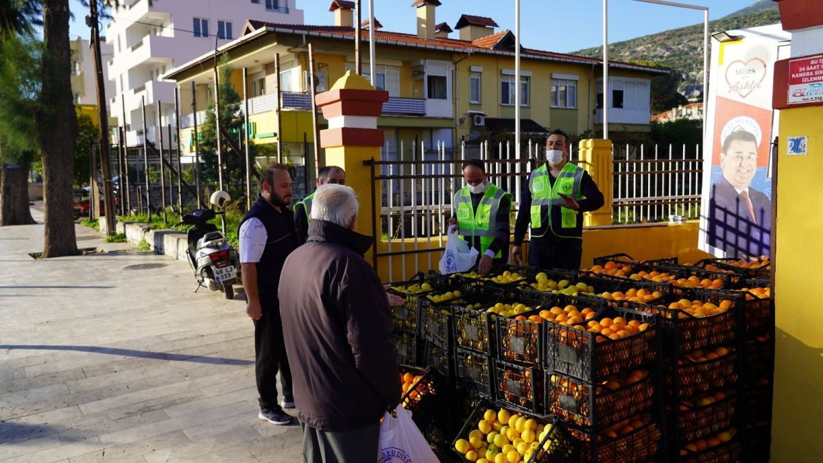 Milas Belediyesi, üreticilere destek olmak amacıyla satın aldığı portakal ve limonları vatandaşlara ücretsiz dağıttı.