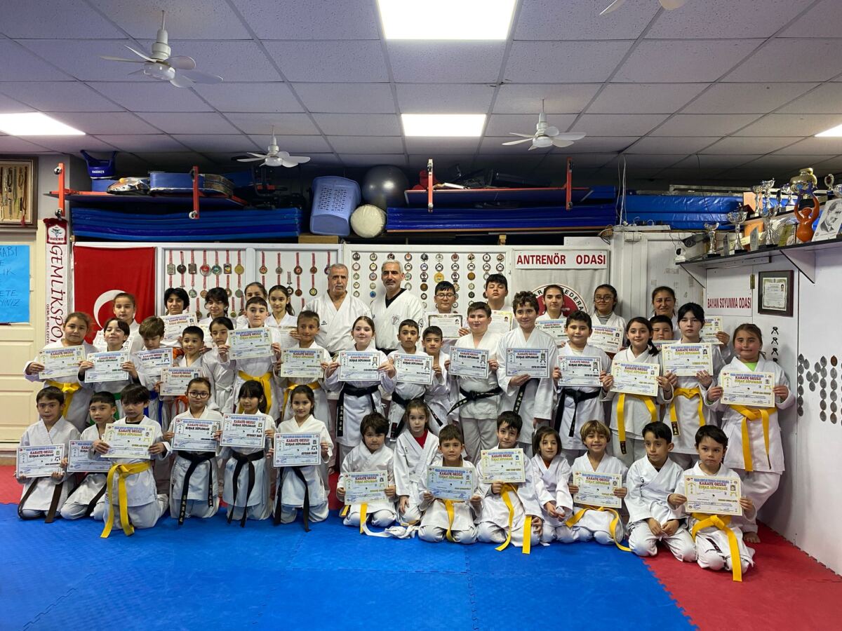 Milas Gençlik Merkezi Spor Kulübü’nde büyük bir gurur ve sevinç yaşandı. Karate sınavında kuşak sınavını başarıyla tamamlayan sporculara başarı belgeleri ve yeni kuşakları Kulüp Başkanı Aşkın Binbir, Kulüp Başkan Yardımcısı Şahin Demir ve Antrenör İbrahim Kartal tarafından takdim edildi. Bu anlamlı etkinlikte, sporcuların azmi ve başarısı göz kamaştırdı.