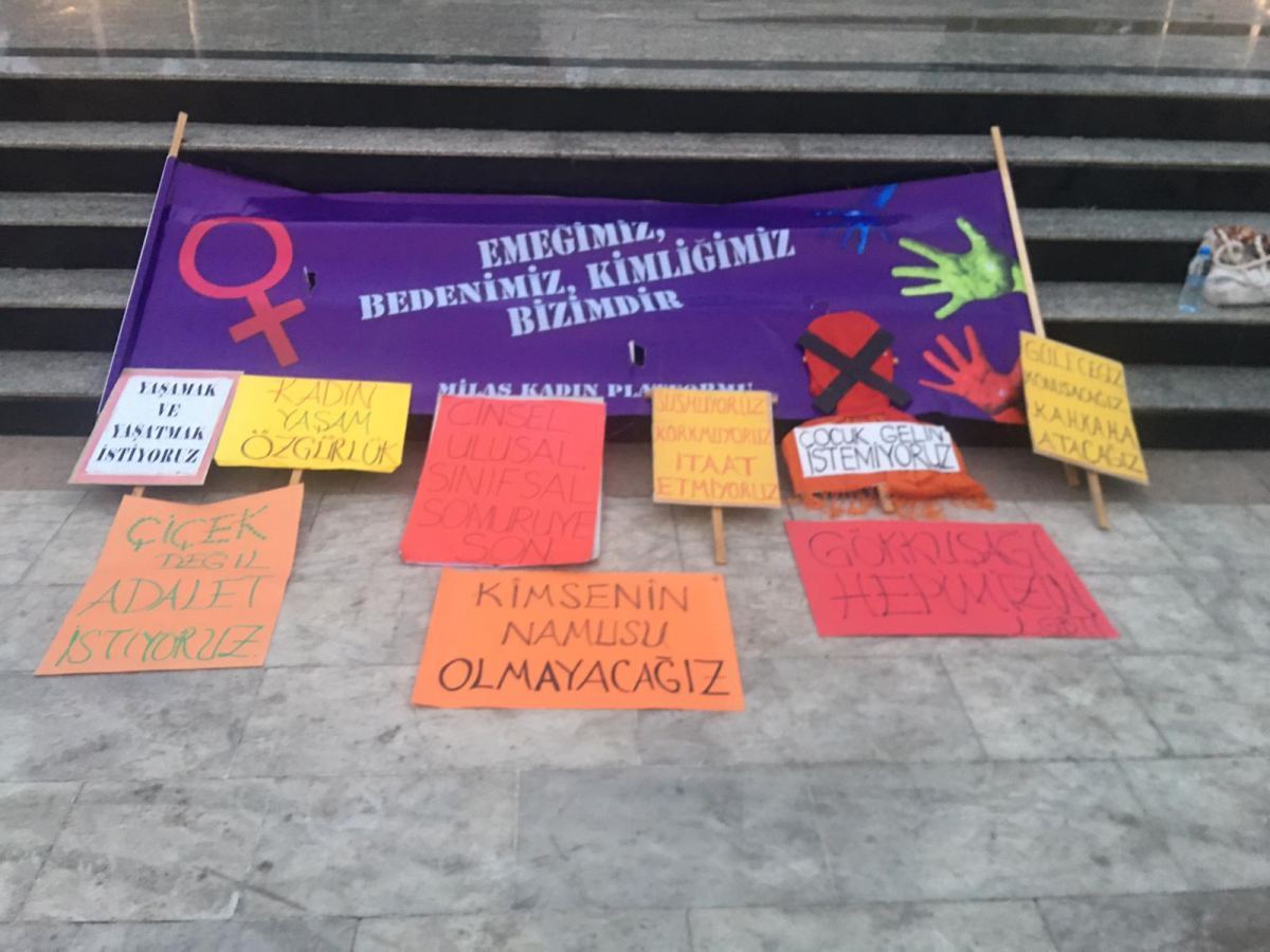 Milas Kadın Dayanışması, ‘25 Kasım Kadına Yönelik Şiddete Karşı Uluslararası Mücadele Günü’ nedeniyle Atapark’ta basın açıklaması düzenledi. Milas Kadın Dayanışması adına Elif Kaya’nın okuduğu açıklamada; “Biz kadınlar; eşitsizliği, yoksulluğu, şiddeti ve savaşları üreten ataerkilliğe ve kapitalizme karşı isyanımızı haykırmak; kadın dayanışmasından aldığımız mücadele gücümüzle inatla-yılmadan haklarımızı savunmak için dünyanın dört bir yanında, bugün yine meydanlardayız” sözleriyle açıklamanın yapılma amacı vurgulandı.