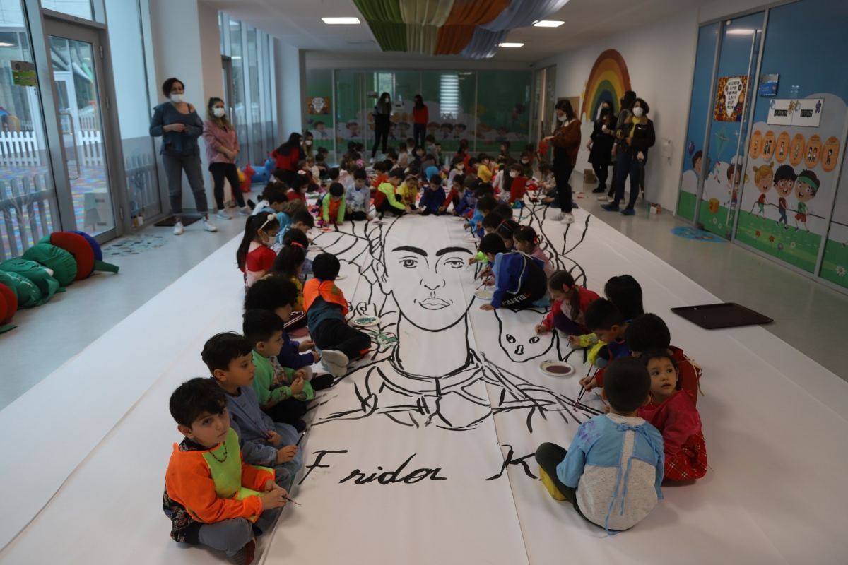 Muğla Büyükşehir Belediyesi Emin Eller Gündüz Bakımevi’nde 96 öğrencinin katılımıyla Frida Kahlo’nun portresi yapıldı.