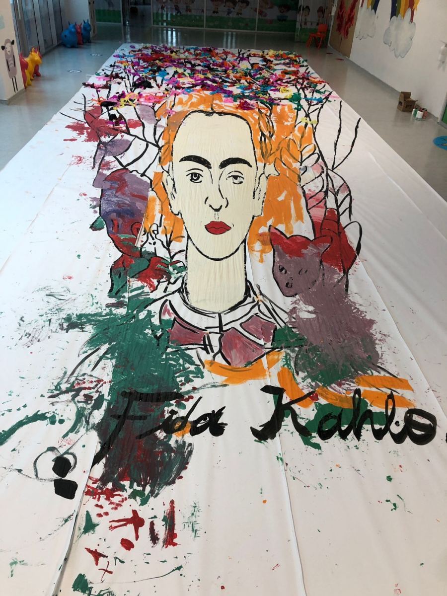 Muğla Büyükşehir Belediyesi Emin Eller Gündüz Bakımevi’nde 96 öğrencinin katılımıyla Frida Kahlo’nun portresi yapıldı. Türkiye’de bir ilkin gerçekleştirildiği çalışmada, 8mx28m uzunluğa sahip Frida Kahlo portresi, çocuklarla yapılan en büyük portre özelliğine sahip oldu.