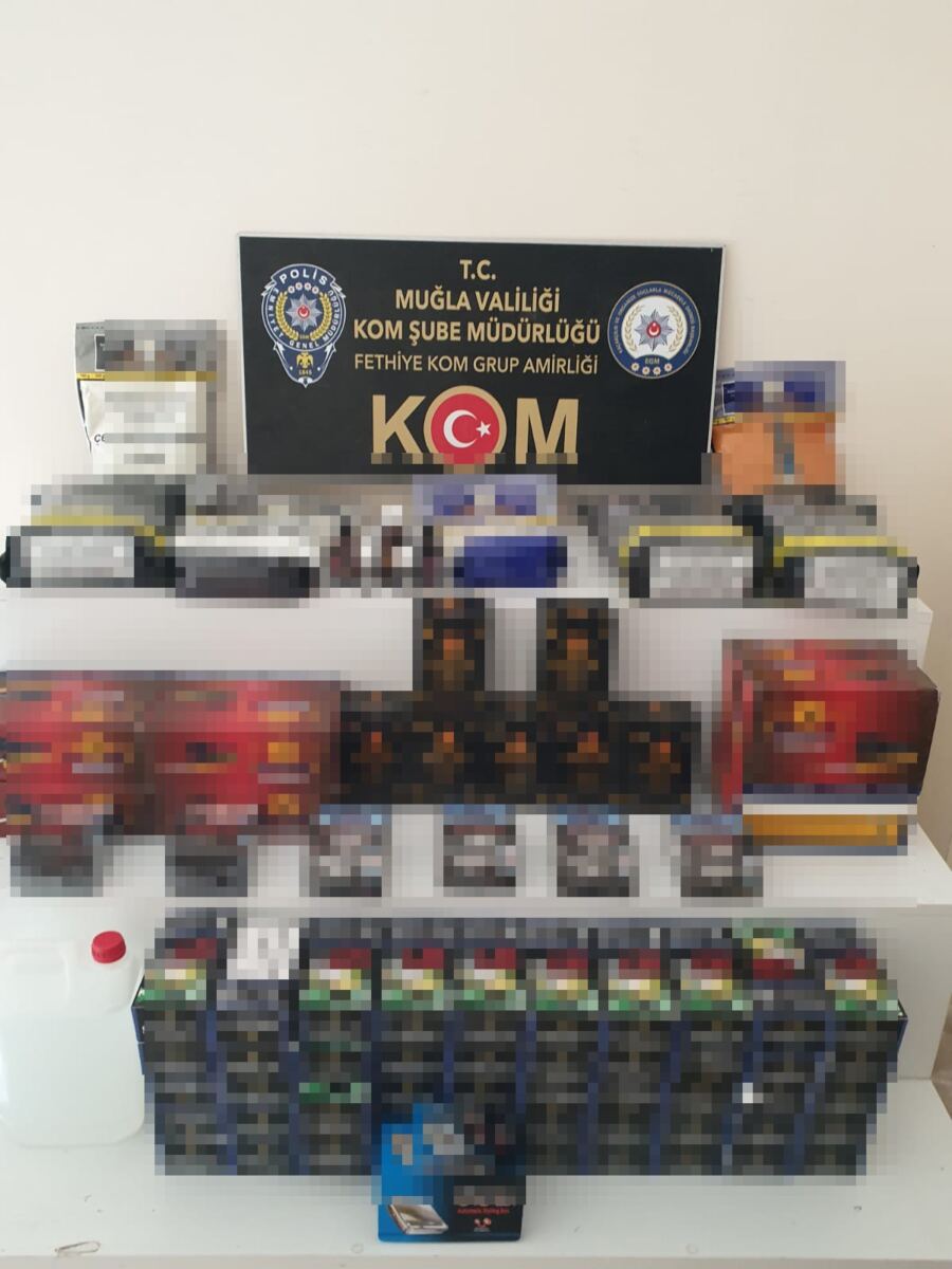 Muğla İl Emniyet Müdürlüğü Kaçakçılık ve Organize Suçlarla Mücadele Şubesi ekipleri yasa dışı tütün ve tütün ürünler satan işyerlerine yönelik çalışmalarını aralıksız sürdürüyor. Edinilen bilgiye göre ekipler, Muğla merkez ve Bodrum, Datça, Milas, Menteşe ile Fethiye ilçelerinde yasa dışı tütün ve tütün ürünler satan işyerlerine operasyon düzenledi. 29 ekip ve 70 personelin katıldığı ‘duman’ adı verilen operasyonda 70 paket nargile tütünü, 1 kilo 800 gram açık kıyılmış tütün, 18 kesilmiş bandrol, 96 paket sigara, 115 puro, 6 elektronik sigara, 5 likit, 60 sigara sarma kağıdı, 11 sigara ağızlığı, 200 kilitli poşet, 5 litre etil alkol, 5 alkol yapımında kullanılan kit, 7 paket bandrolsüz tütün, 10 bin boş makaron, 7 paket sigara sarma kağıdı, 7 kilo nargile kömürü, 138 sigara sarma makinesi ve 14 bin 830 doldurulmuş makaron ele geçirildi. Operasyon çerçevesinde 8 işyeri sahibi hakkında 5607 Kaçakçılıkla Mücadele Kanunu çerçevesinde adli işlem yapıldı.